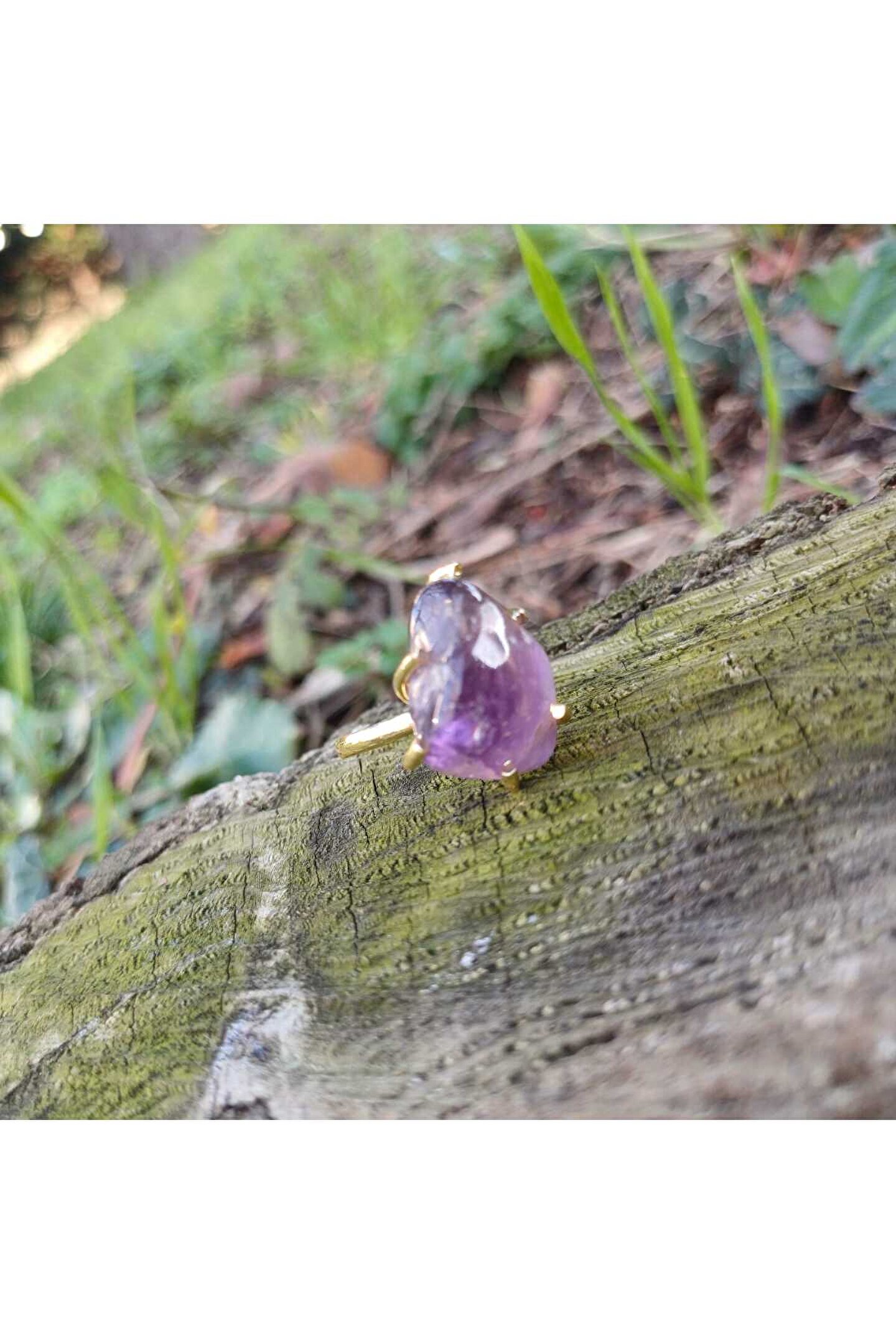 arzela DOĞAL TAŞ AMETİST KRİSTAL YÜZÜK Ayarlanabilir Ebat