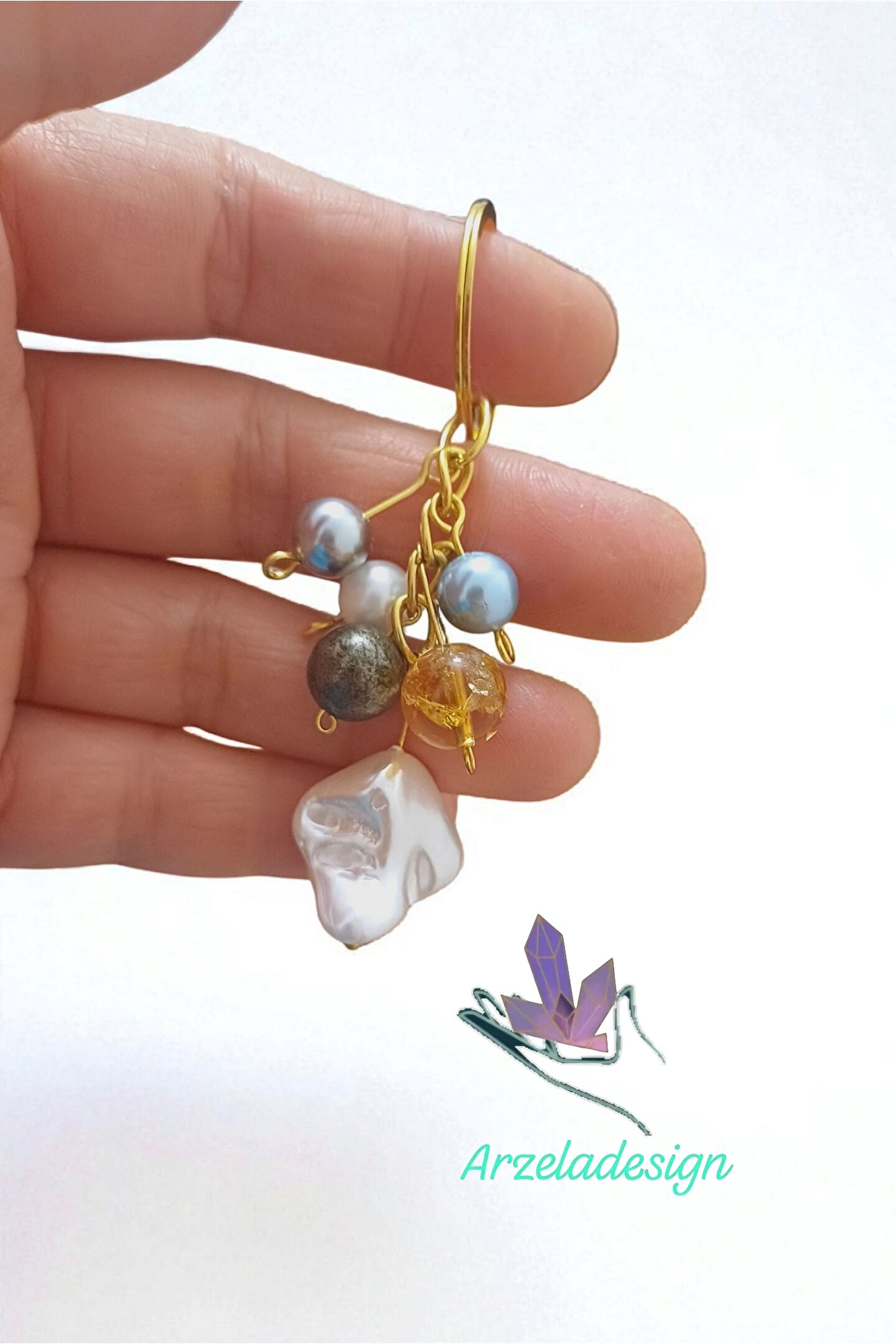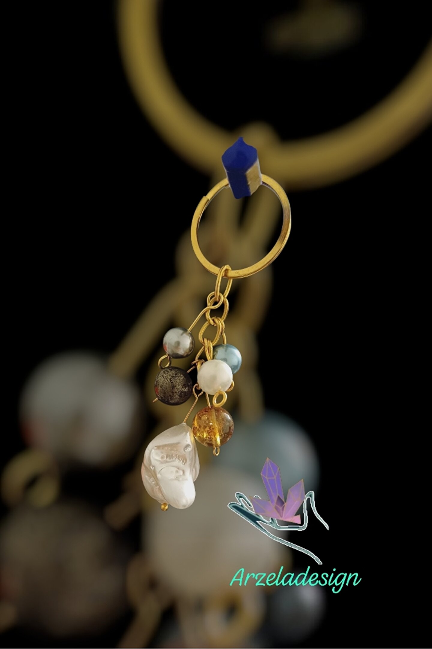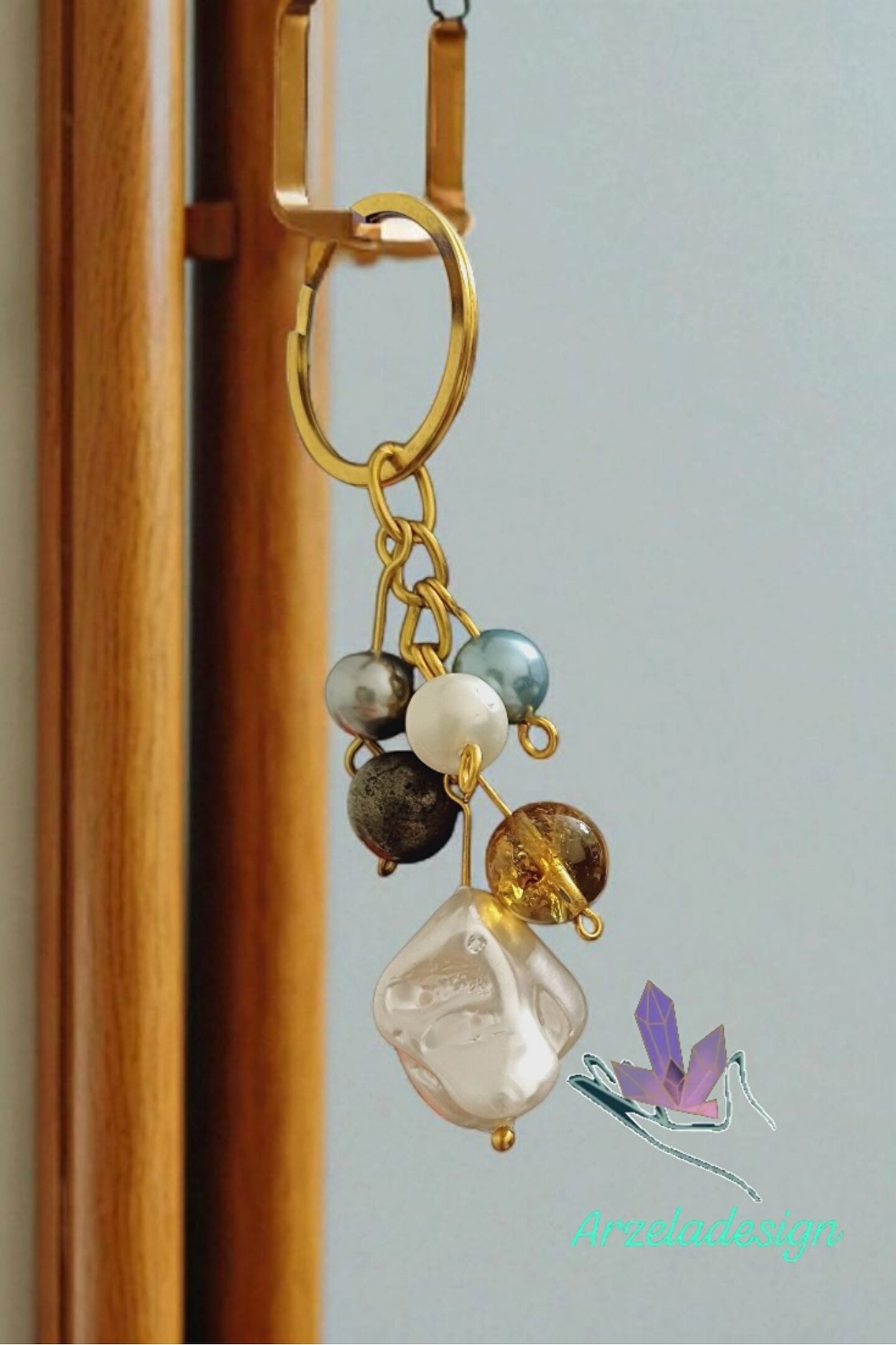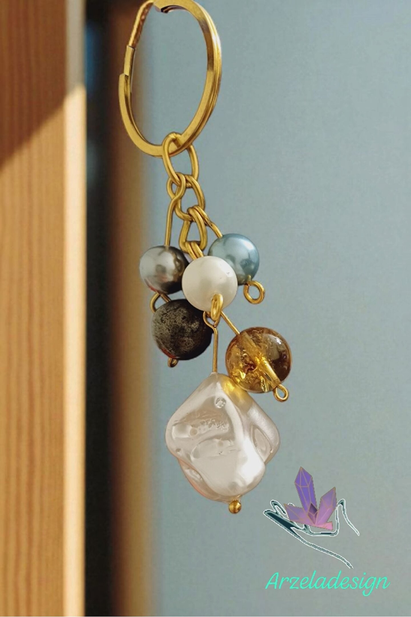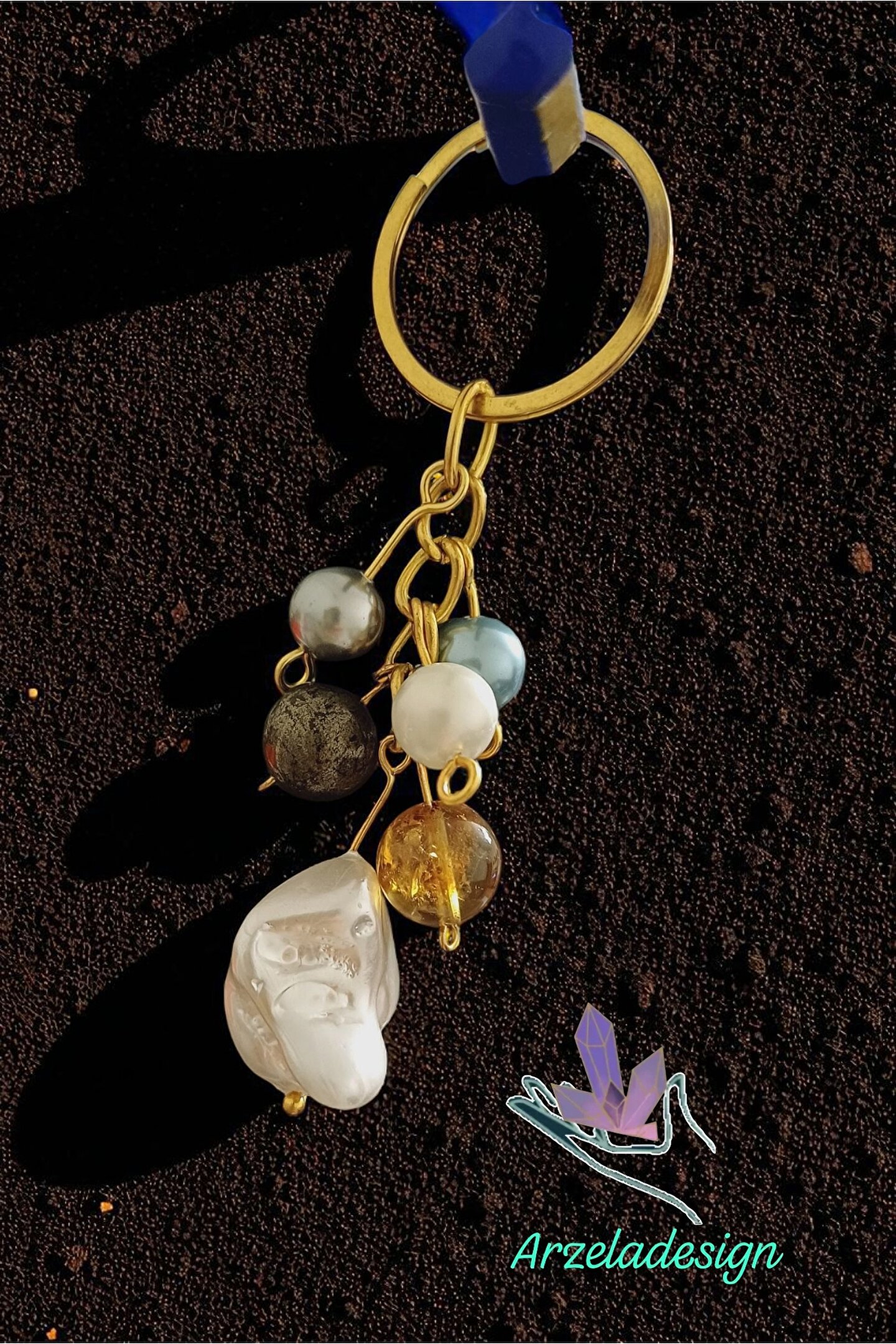 arzela Doğal Taş Anahtarlık Barok İnci Sitrin Pirit Bolluk ve Berekt Anahtarligi