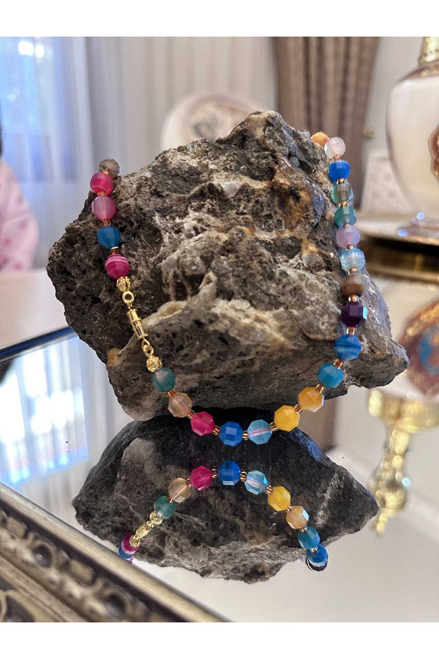 arzela Doğal Taş Fasetli Karma AKİK Kolye