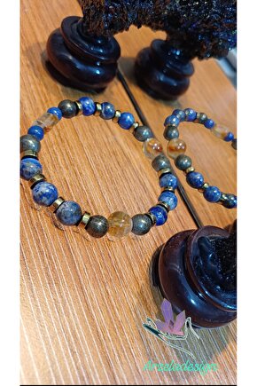arzela Doğal Taş Lapis Lazul,Sitrin,Pirit ve Hematit Bileklik İfade Koruma ve Bereket Bilekligi