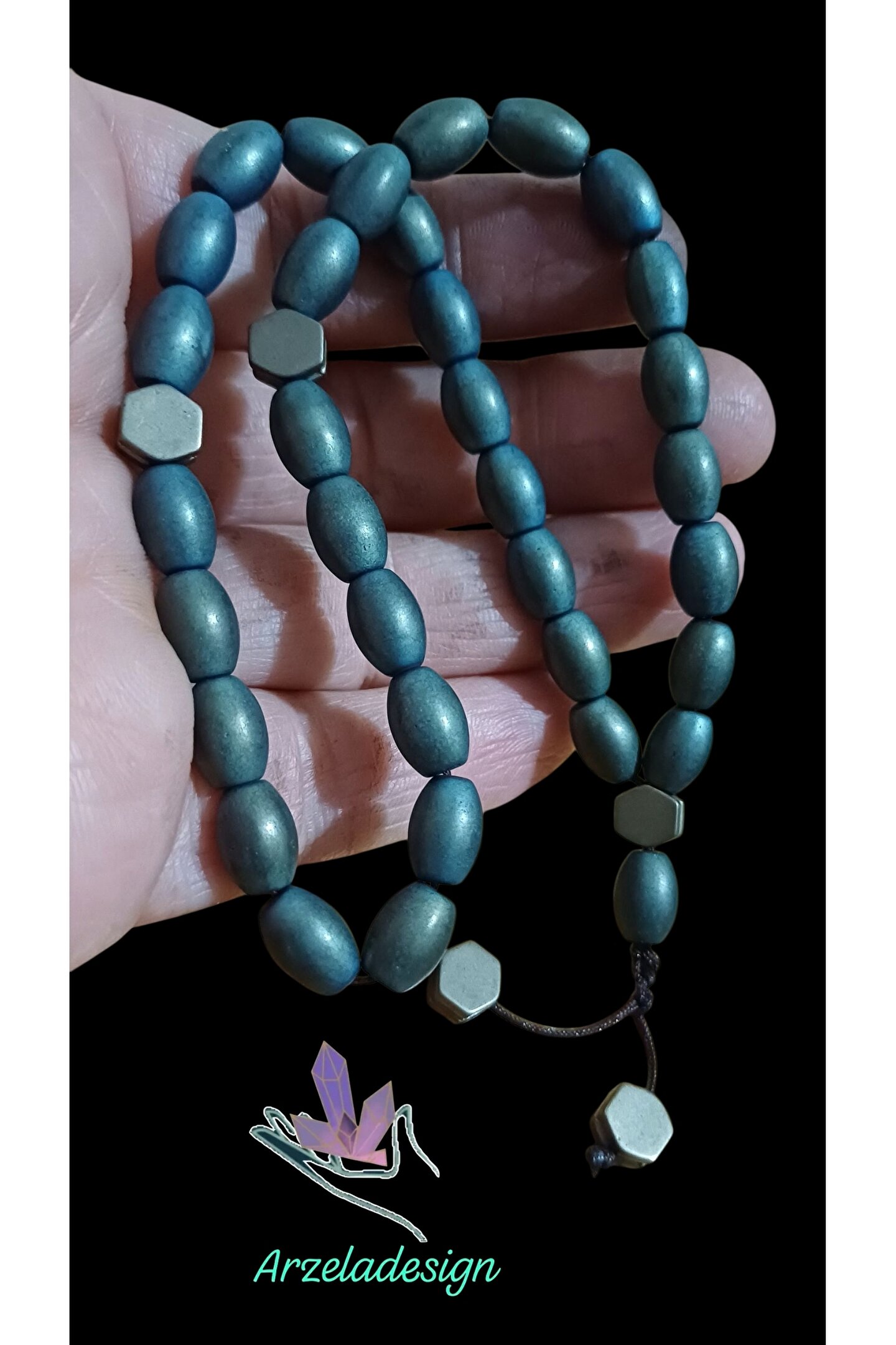Doğal Hematit Taşı Tespih – Enerji ve Şıklık Bir Arada Ürün Açıklaması: ✔️ Doğal hematit taşı kullanılarak özenle hazırlanmıştır.; ✔️ Hematit taşı, negatif enerjiyi uzaklaştırmaya ve odaklanmayı artırmaya yardımcı olur.; ✔️ Şık tasarımıyla hem günlük kullanım hem de hediye için idealdir.; ✔️ Dayanıklı çadır ipi ile uzun ömürlü kullanım sunar.; ✔️ Tesbih uzunluğu: yaklaşık 30-35 cm, taneler 8 9 mm aralığında.; ✔️ Metal püskül detayı ile modern ve zarif bir görünüm sağlar.; ✔️ Özel hediye kutusunda gönderilir.; ✨ Kendiniz için enerji ve denge kaynağı, sevdikleriniz için anlamlı bir hediye!