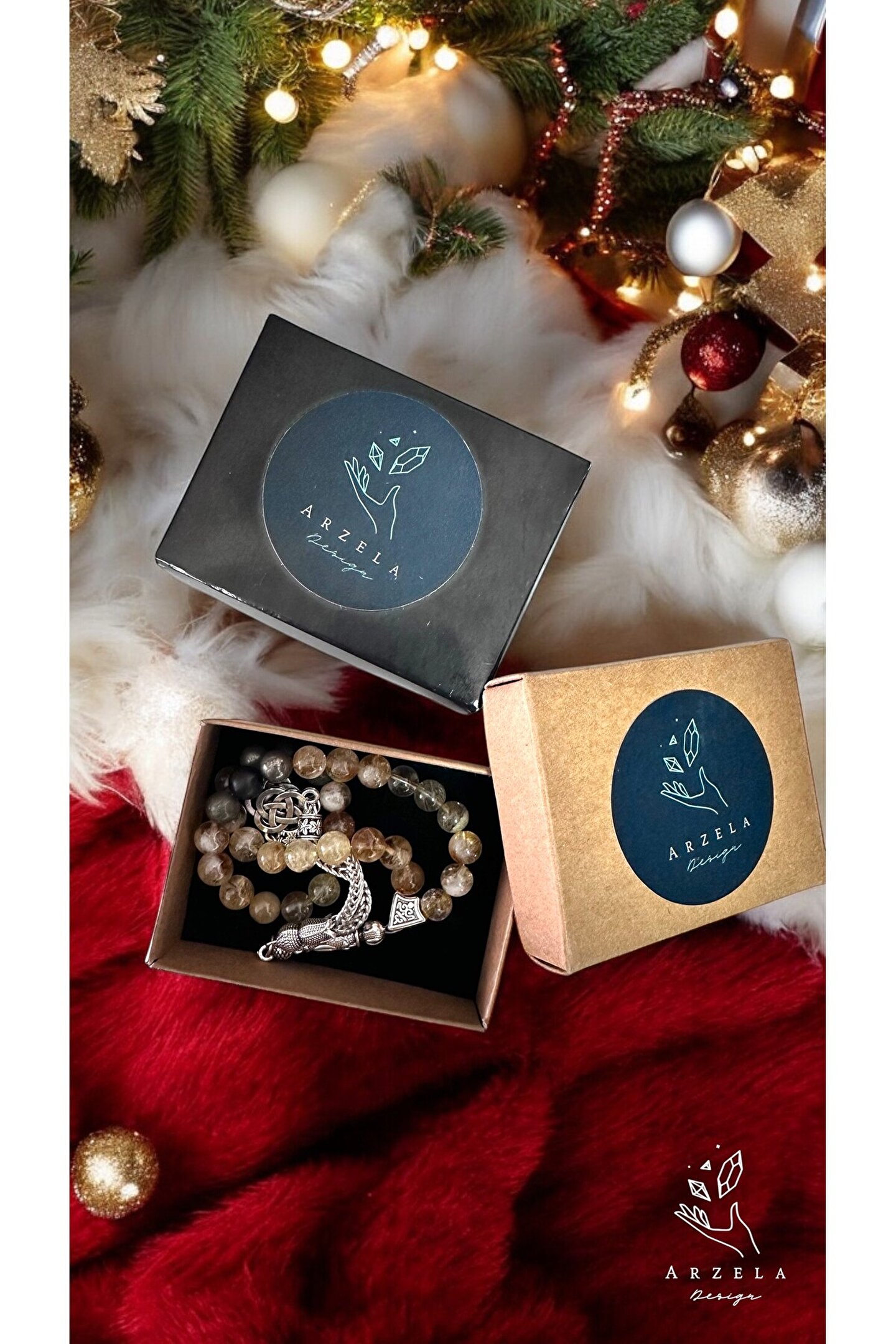 -Doğal taşların eşsiz dokusu ve gücüyle tasarlanmış, bu tılsım, hem şıklığı hem de koruyucu özellikleriyle dikkat çeker.; Sitrin pirit ve sungit güçlü bir aura olusturur Sitrin ve pirit para ve bereketi temsil ederken Sungit korumayı temsil eder Birlikte güçlü bir Şifa enerjisi oluşur Her taş yanına gelen diğer taşların kimyasiyla formüle olur Taslar kişinin ruh haline ve ortamın enerjisine göre ısı değiştirir,bedeni dengeye çeker sakinlestirir,topraklar TESPİH Özel tasarimdir Materyal gümüş kaplamadir Su ve kimyasal ile temas ettirmeyiniz