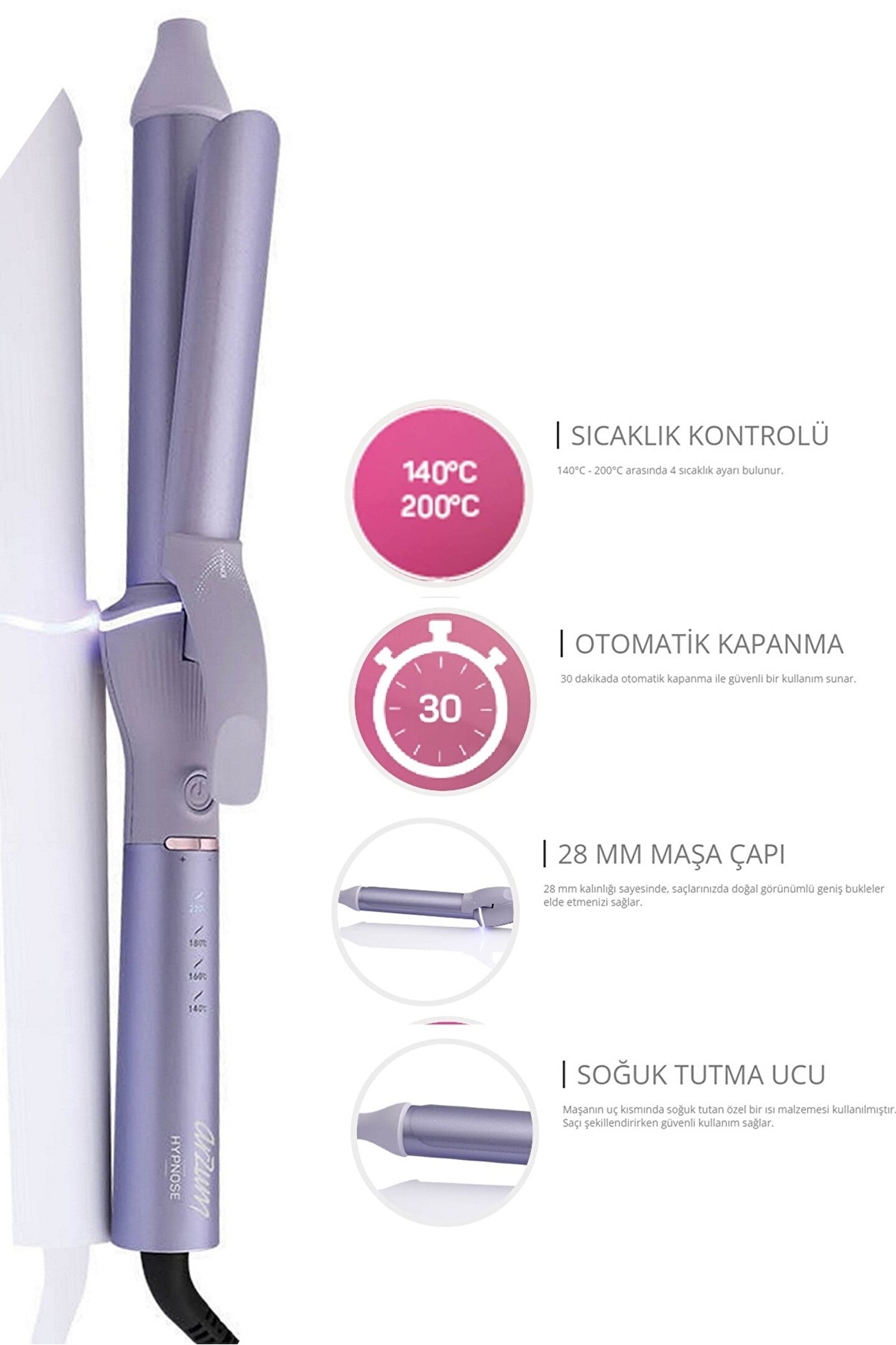 Arzum Hypnose Ionmax Saç Maşası, iyonmax teknolojisiyle 2 kanaldan iyon çıkışı sağlayarak saç tellerine nüfuz eder ve elektriklenmeyen, ekstra yumuşak ve parlak saçlar elde etmenizi sağlar. ;Turmalin seramik kaplama, yüksek sıcaklıkta saç tellerini koruyarak kolayca şekil verir ve sağlıklı bir parlaklık kazandırır.;Maşa ısındığında sesli uyarı vererek kullanıma hazır olduğunu bildirir ve 60 saniyede ısınarak hızlı bir kullanım sunar. ;140°C – 200°C arası 4 sıcaklık ayarı, farklı saç tiplerine uygun esnek şekillendirme imkanı sağlar.;30 dakikalık otomatik kapanma fonksiyonu, güvenli bir kullanım sağlarken enerji tasarrufuna yardımcı olur. ;28 mm kalınlığı ile saçlarınızda doğal görünümlü geniş bukleler oluşturabilir, ekstra uzun plakaları sayesinde saçlarınızı daha hızlı şekillendirebilirsiniz.;Maşanın uç kısmında kullanılan soğuk tutan özel malzeme, saç şekillendirirken güvenli ve konforlu bir kullanım sunar.