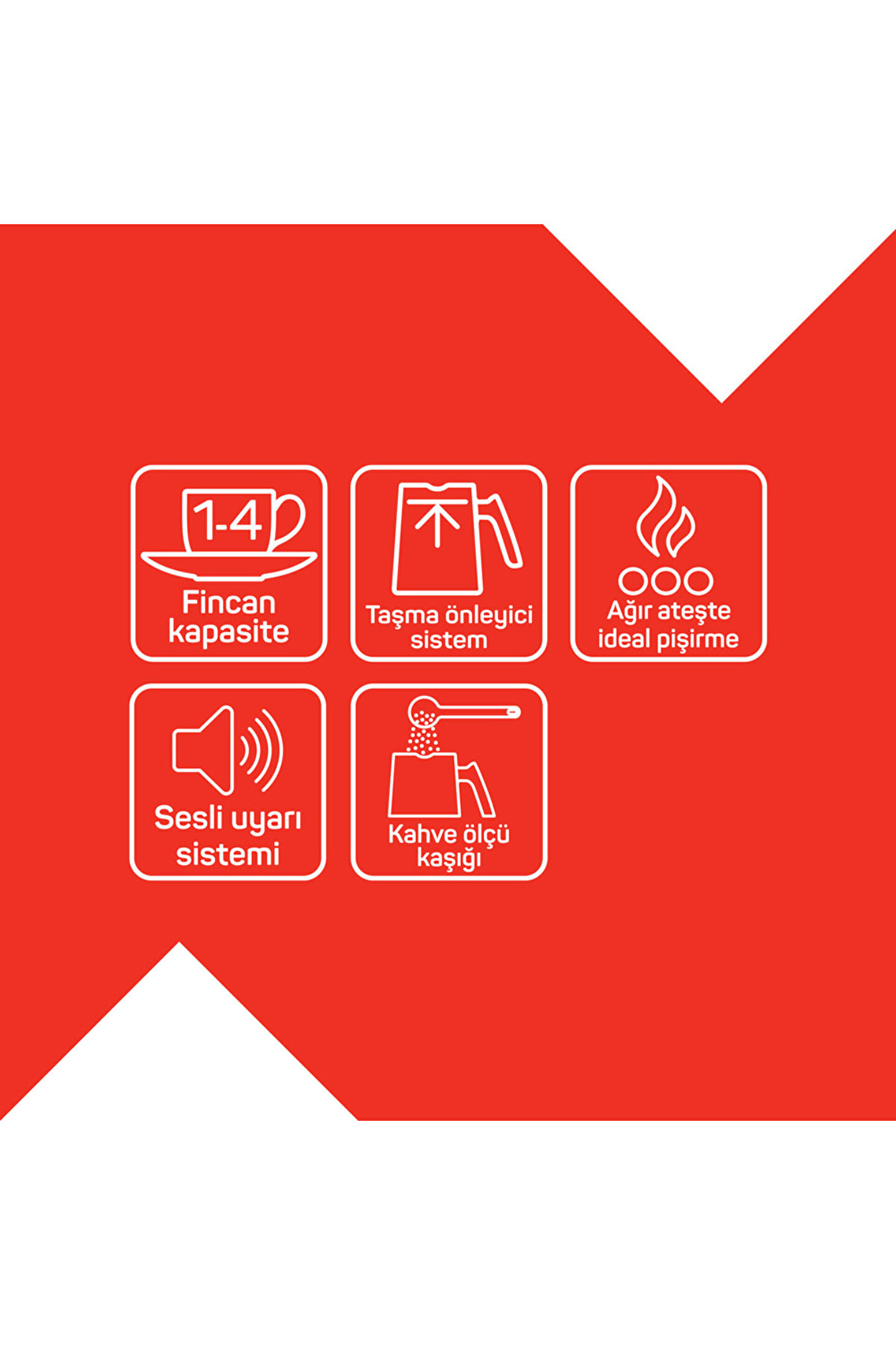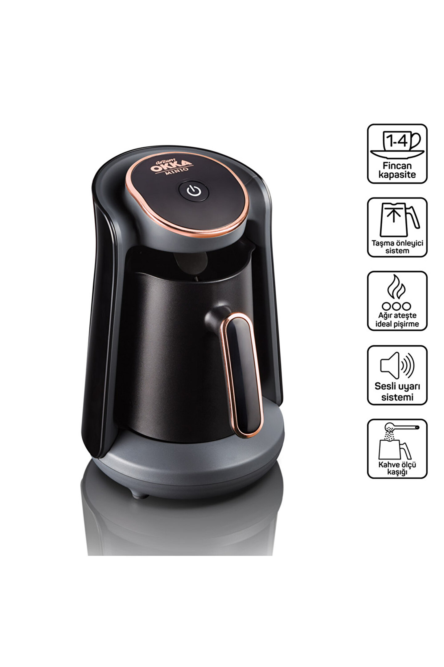Arzum OKKA Minio Türk kahvesini tadını çıkararak bol köpüğü ile tam kıvamında pişirir.;Üstelik tek seferde 4 fincan kahve servis edebilir.;Pişirmeyi algılama sensörü ile kahvenin taşmasını önler, size de bol köpüklü Türk kahvenizin keyfini çıkarmak kalır.;Sesli ve ışıklı uyarı sistemi sayesinde kahveniz hazır olduğunda sizi uyarır.;OKKA Minio, kahveyi ağır ateşte ideal kıvamda pişirerek bol köpüklü Türk kahvesini keyifli sohbetlerinize taşır.;Arzum OKKA Minio, sağ ve sol el kullanımına uygun çift akıtma ağzına sahip cezvesi sayesinde rahat kullanım sağlar.;OKKA Minio, dünyanın en prestijli yarışmalarından biri olan Plus-X ödüllerinden "Dizayn, Kullanım Kolaylığı, Yılın En İyi Ürünü" dallarında üç büyük ödülü almıştır.;20'den fazla ülkeden seçilmiş uzman jürisiyle 1953'ten beri uluslararası alanda mükemmel tasarımın sembolü olan IF Tasarım ödülüne layık görülmüştür. Bunun yanında 1955'ten beri dünyanın en prestijli ödüllerinden biri olan RedDot 2017 tasarım ödülünü almıştır.;Fincan boyutuna göre ideal kahve ölçüsünü ayarlayabilmenizi sağlayan kaşığı size büyük bir kullanım kolaylığı kazandıracak.