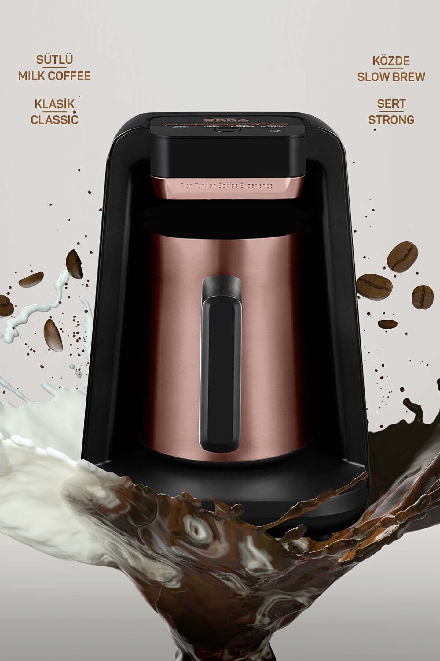 Arzum kahve makinesi, otomatik karıştırıcılı çelik hazneye sahiptir.; Kahve ölçü kaşığı ile tam kıvamında kahve hazırlar.; Arzum OK0012, pişirme haznesi yerinde olmadığında uyarı ışığı ile bildirim sağlar.; Arzum markalı modelde açma kapama düğmelerinin yanı sıra otomatik kapanma özelliği vardır.; Arzum OK0012 Okka Rich Spin M Türk kahve makinesi ortalama 7 yıl kullanım ömrüne sahiptir.; Arzum Okka OK0012, 700W elektrik güçle çalışır.; Çıkarılabilir haznesi kablosuz Türk kahve makinesi, çift taraflı akıtma ağzı ile sağ ve sol el kullanımına uygundur.; 5 fincan kapasiteli Türk kahve makinesi; klasik, sert, sütlü ve közde kahve pişirme özelliklerine sahiptir.; Arzum OK0012 kahve makinesi modelinin iç haznesi su ile yıkamaya uygundur.; Enerji iletim bandının bulunduğu ana gövdesi kuru veya nemli bezle silinerek temizlenir.; Sesli ikaz özelliği ile kahve hazır olduğunda uyarı yapar.; Arzum OK0012-B Okka Rich Spin M Türk kahve makinesi ergonomik tasarımı ve şık görünümüyle beklentileri karşılar.;