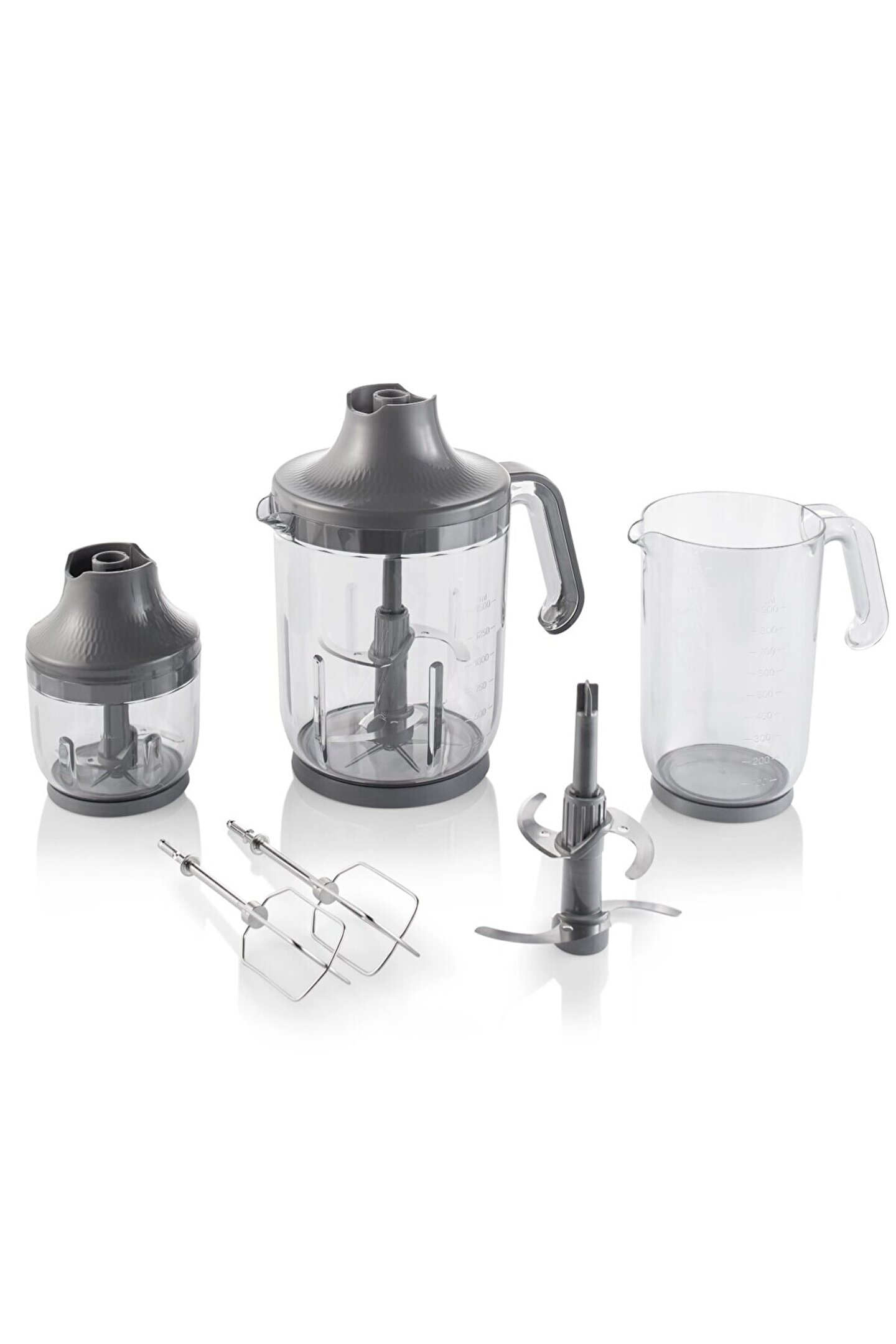 Teknik Özellikler BOYUTSAL AĞIRLIK 9,96 Güç 1500 W Bıçak Sayısı 6 Ölçü Kabı 900 ml Mini Hazne 300 ml Doğrayıcı Kap 1500 ml Diğer Patentli özel tasarımlı paslanmaz çelik bıçaklar, Sensible Touch Teknolojisi ile tek tuşla hız ayarı Diger Metal ayaklı öğütücü ve karıştırıcı, Ergonomik tutuş ve güvenli bir kavrama sağlayan yumuşak dokulu tutma sapı Fonksiyonlar 5 fonksiyonlu (doğrama, rendeleme, dilimleme, çırpma ve el blenderı) Menşei Yerli