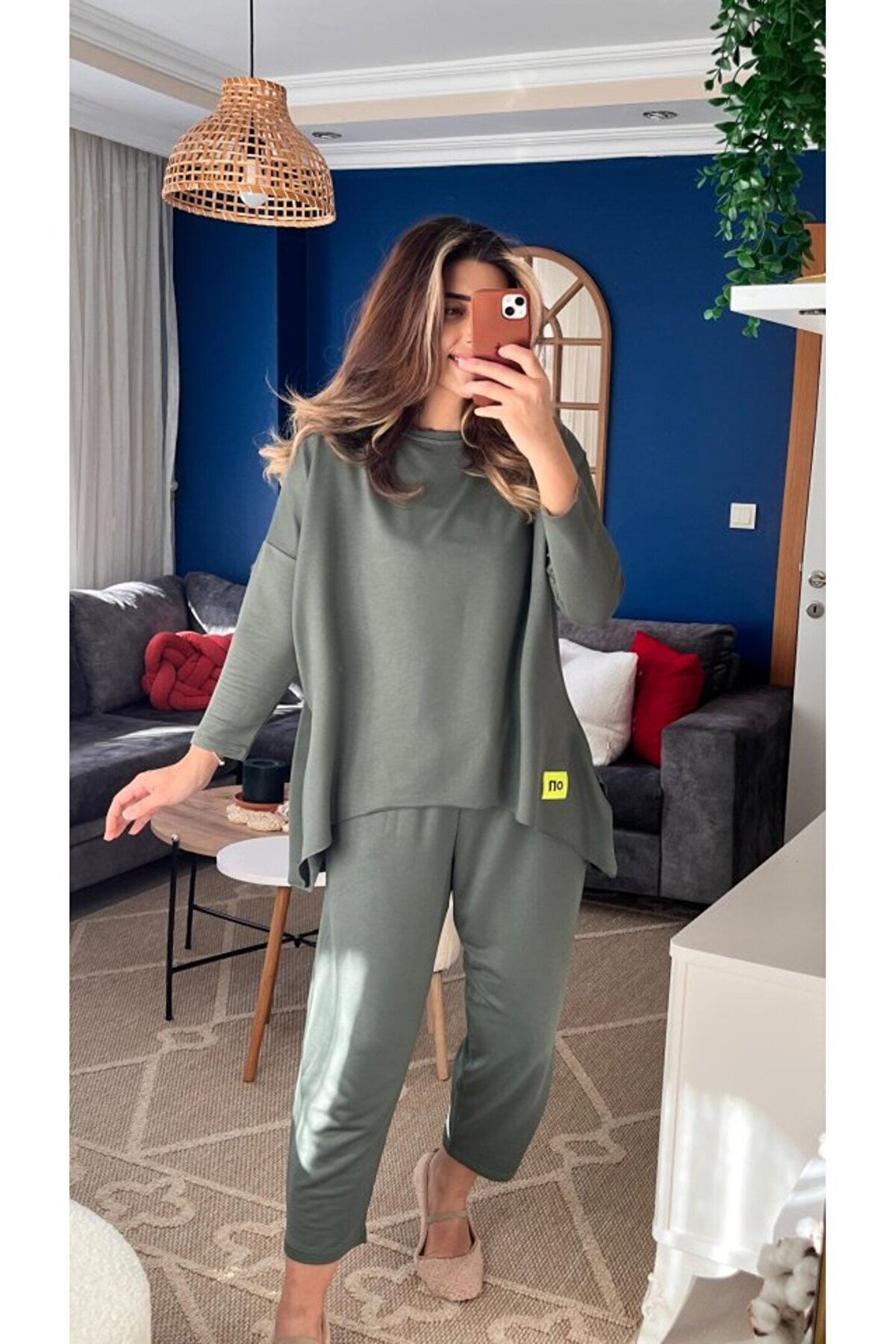 ASFSTORE Kadın Iki Iplik Viskon Pamuk Kumaş Arma Detaylı Ikili Takım