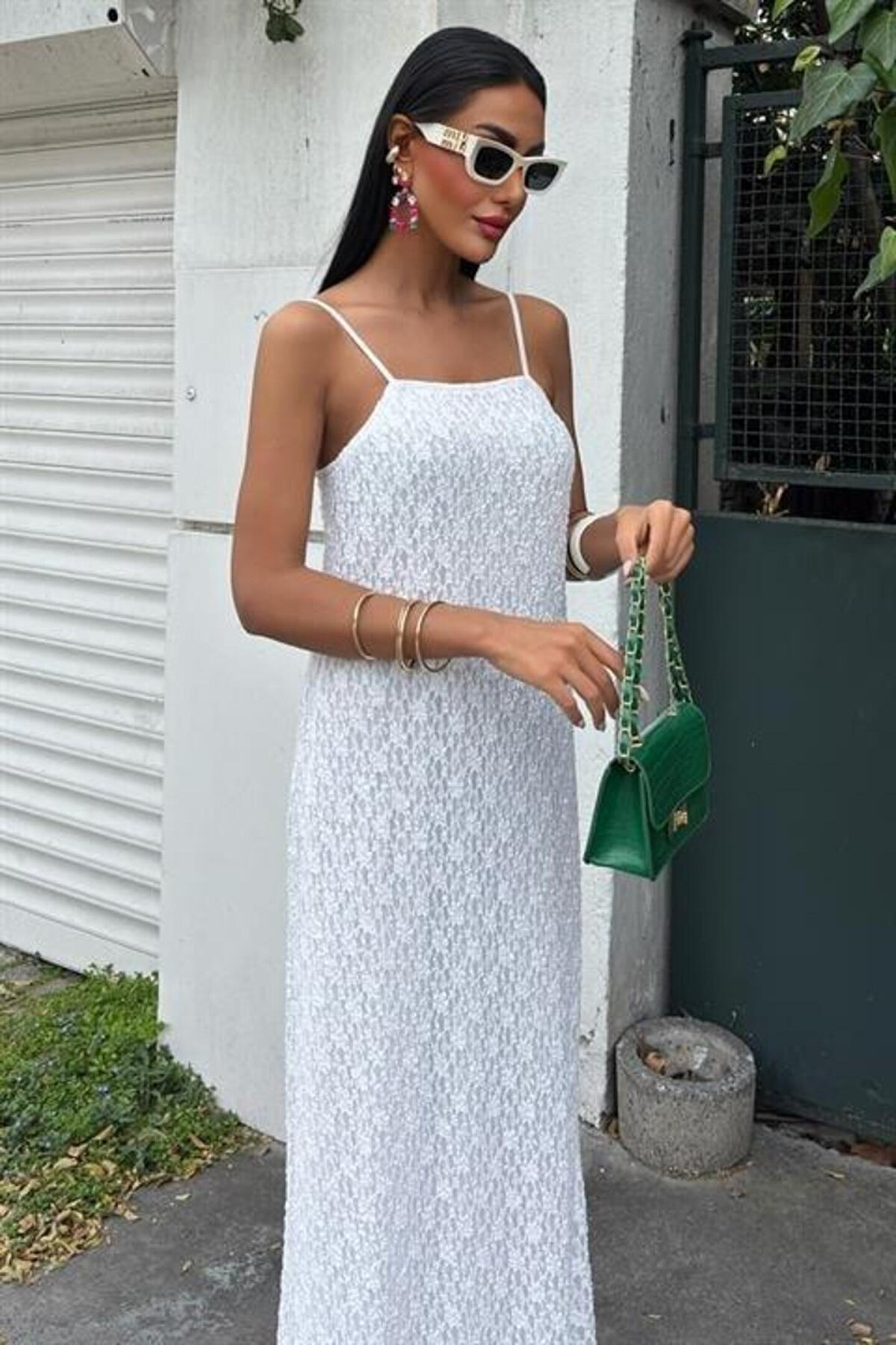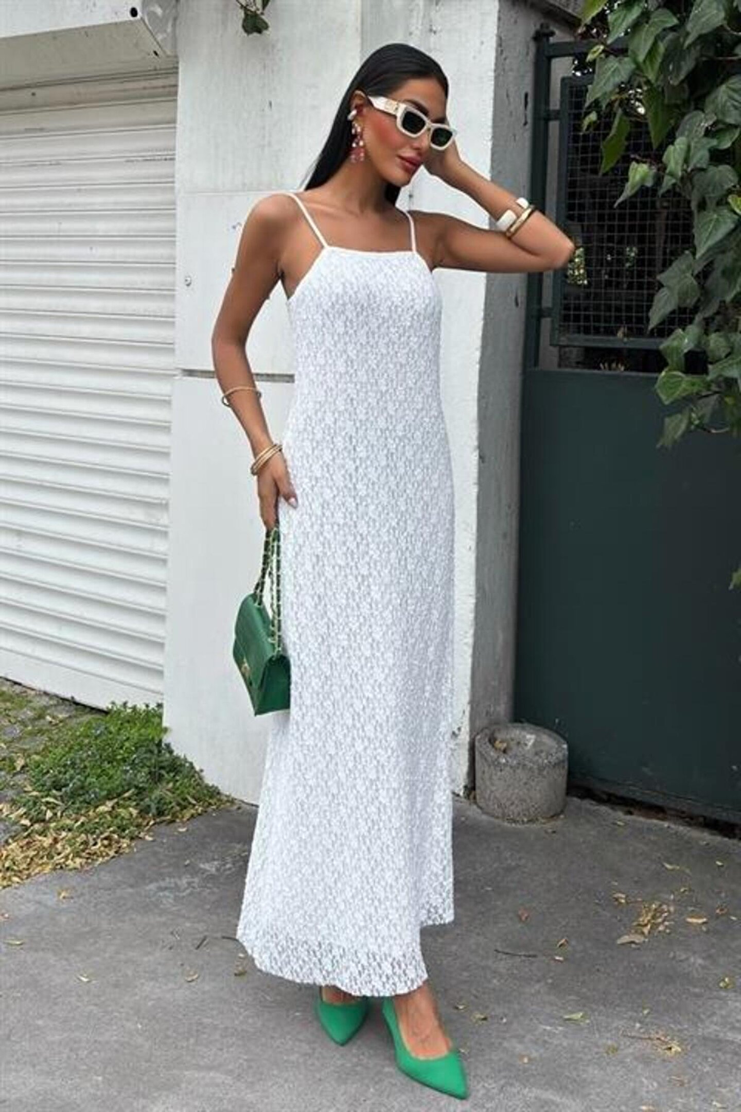 ASH GİYİM Askıları Ayarlanabilir Örme Dantel Elbise 2879