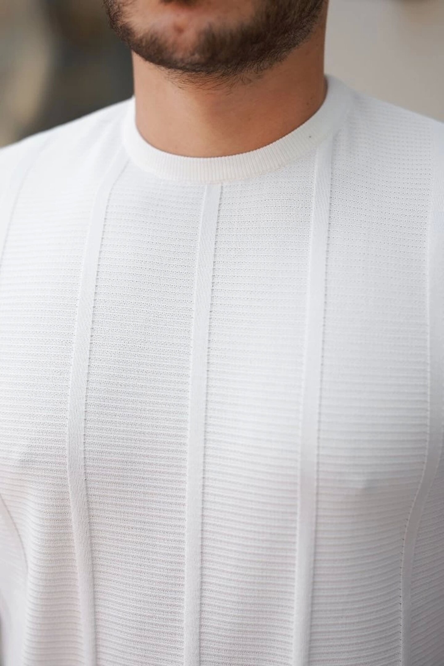 Asil Acar Home Erkek Desenli çizgi Kabartmalı Kısa Kollu Tişört
