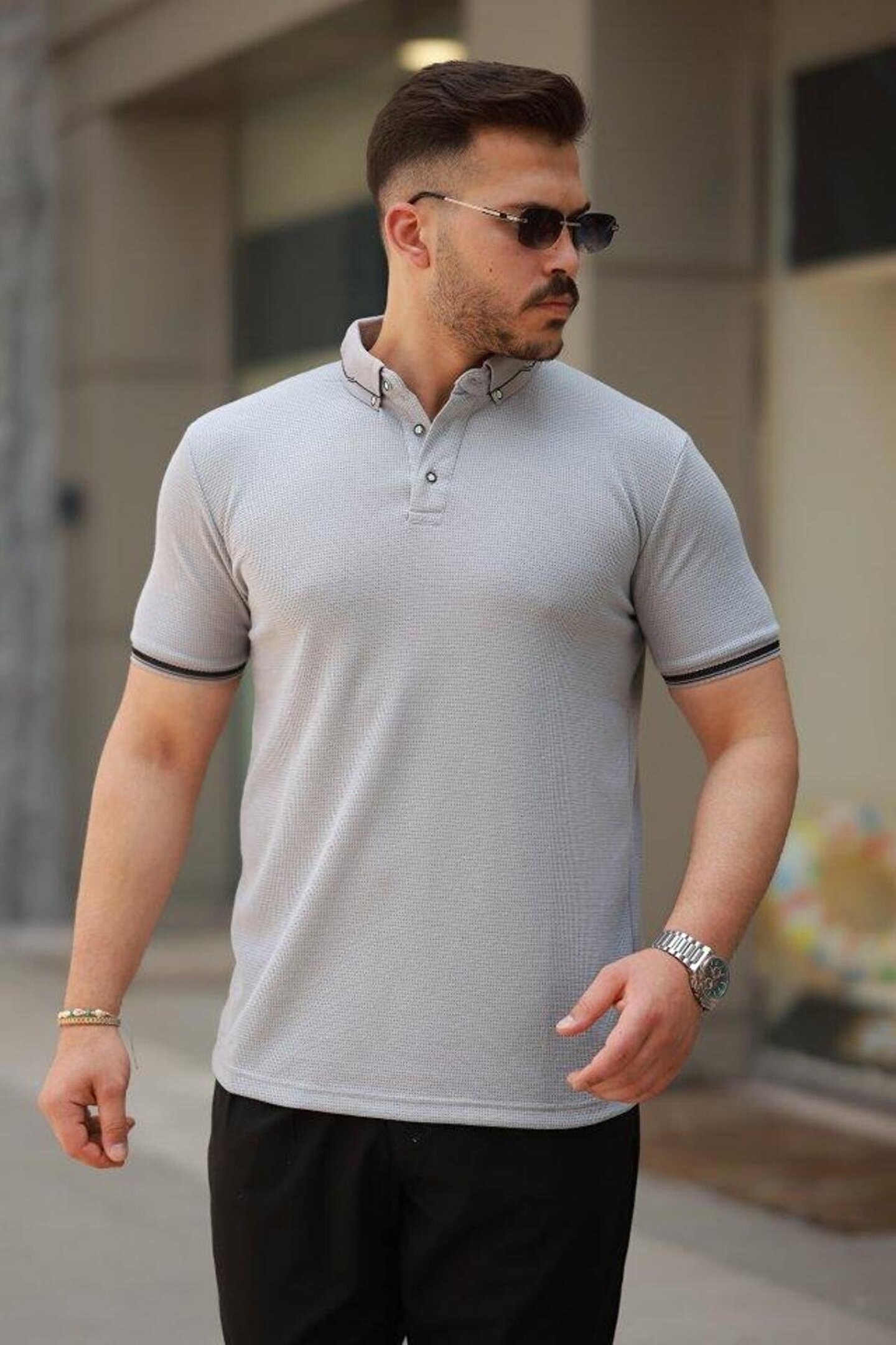 Erkek Düğmeli Yaka Waffle Kumaş Kısa Kollu Tişört