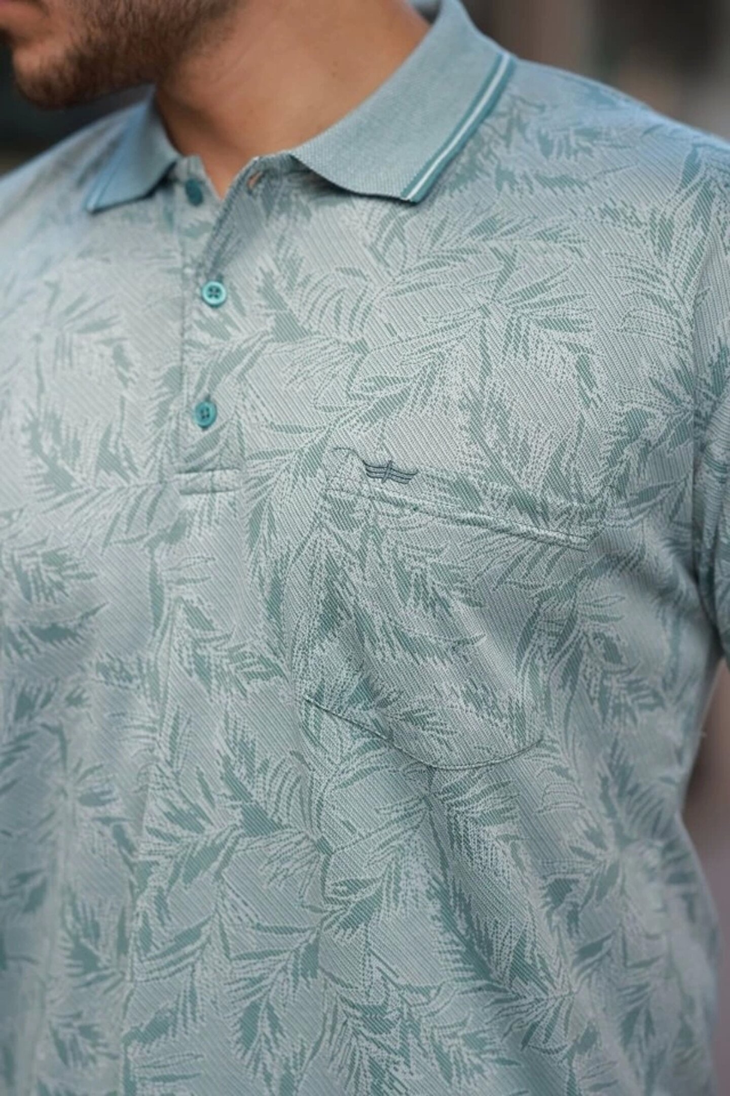 Asil Acar Home Erkek Yakalı Jakar Baskılı Kısa Kollu T-shirt