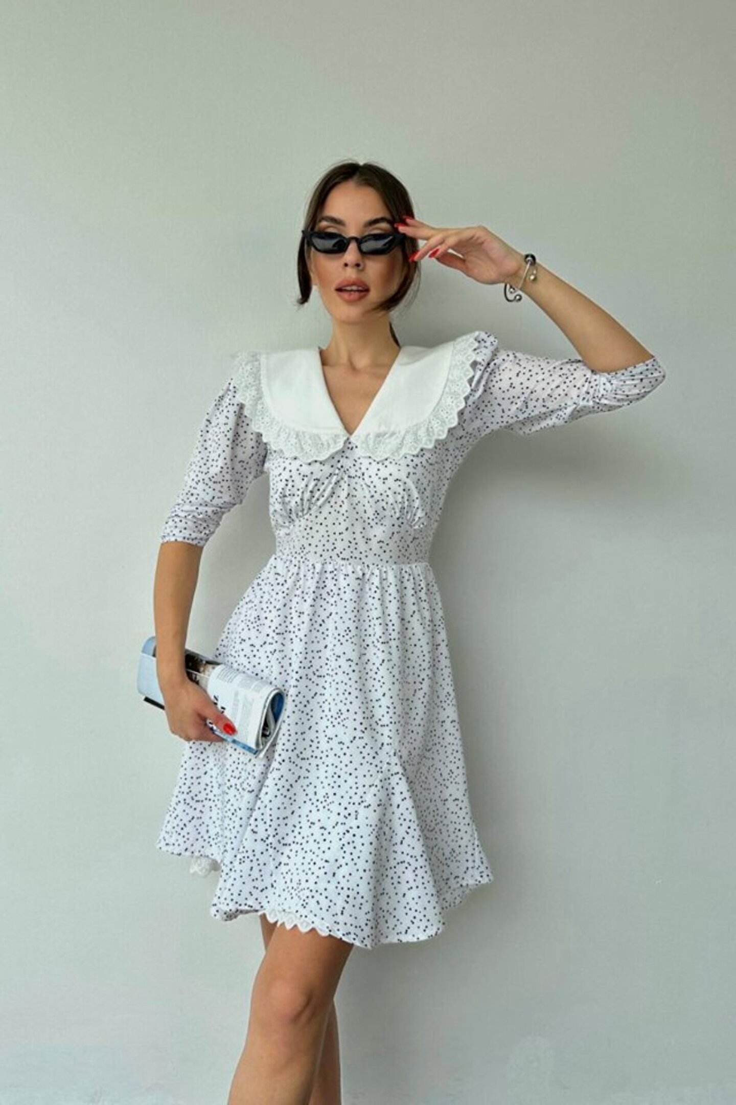 Asil Acar Home eyesof Beyaz Puantiyeli Önlük Yaka Elbise