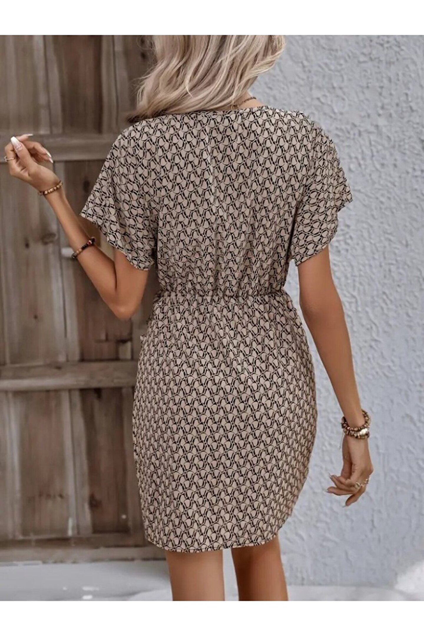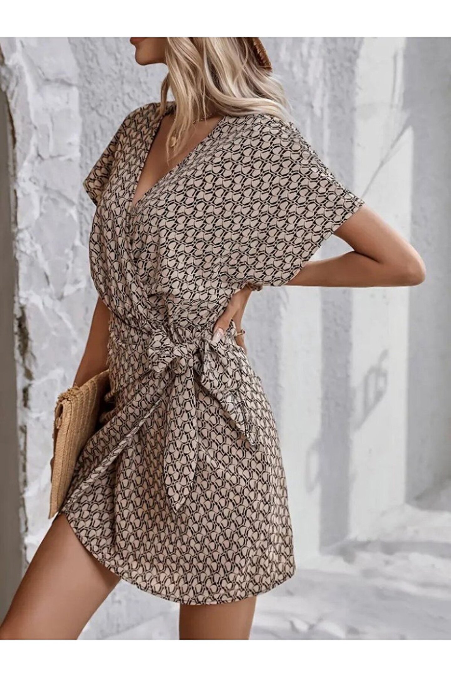 Kadın Kısa Yarasa Kollu önden Kruvaze Yaka Detaylı önden Bağlamalı Desenli Süprem Elbise