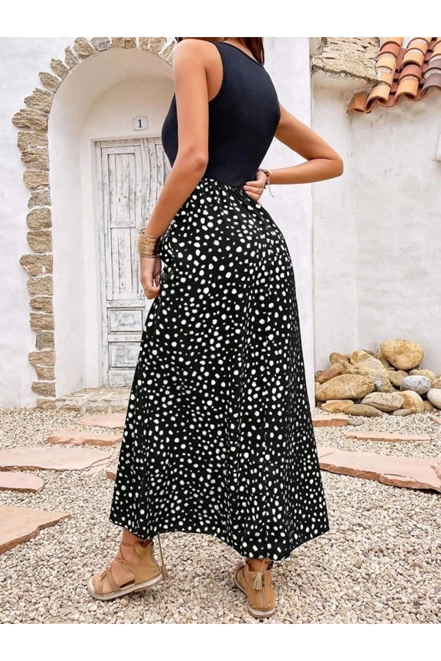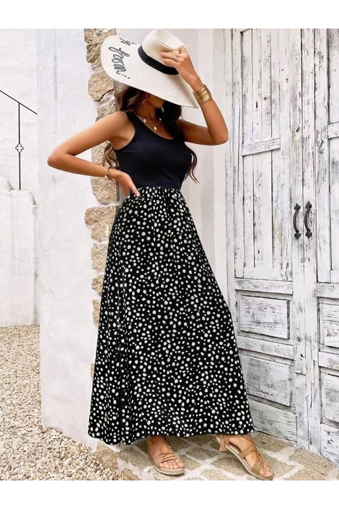 Kadın Askılı Yuvarlak Yaka üst Viskon Alt Desenli Bürümcük Elbise