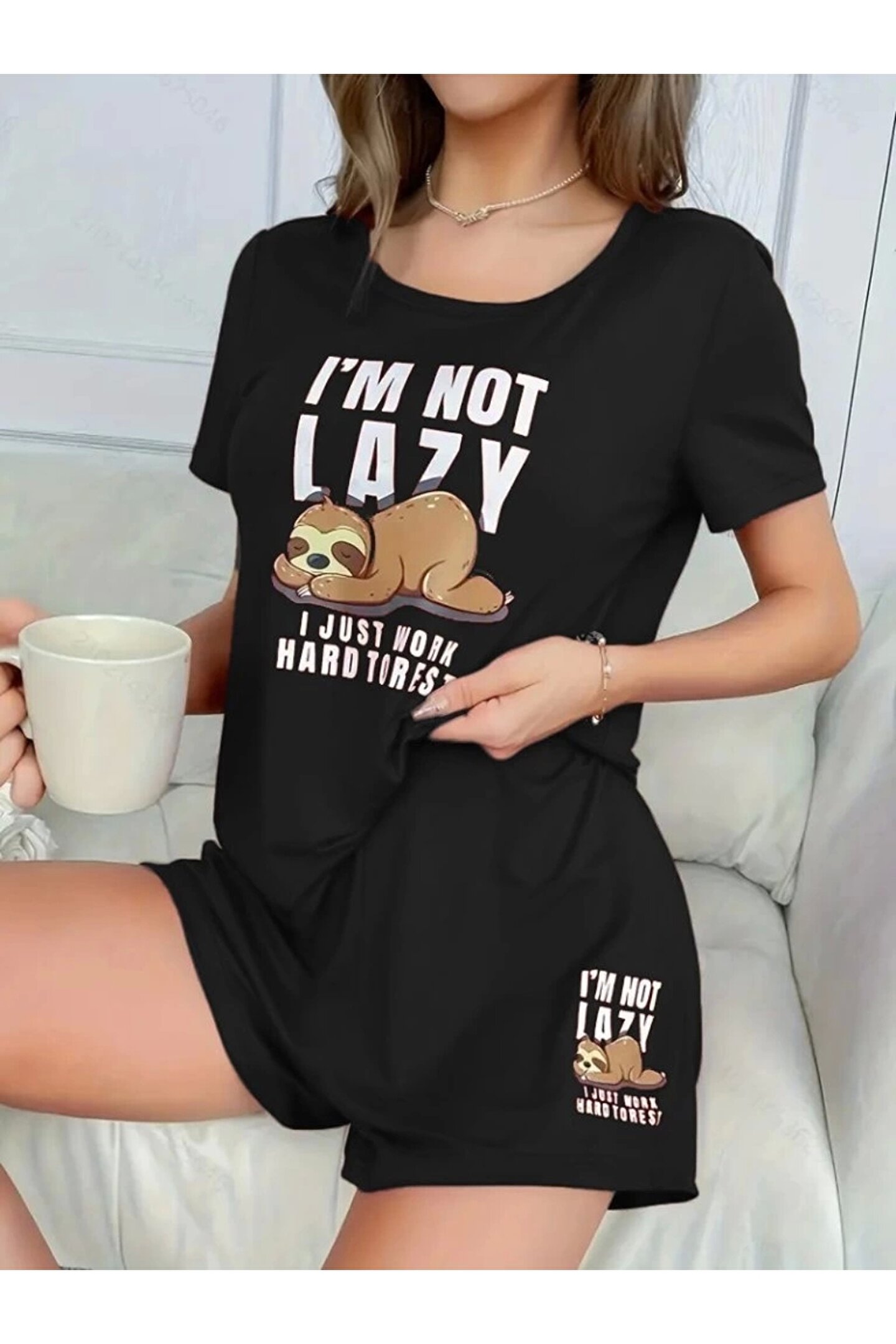 Asil Acar Home Kadın Kısa Kollu Bisiklet Yaka Baskılı Viskon Bluz Ve şort Ikili Takım