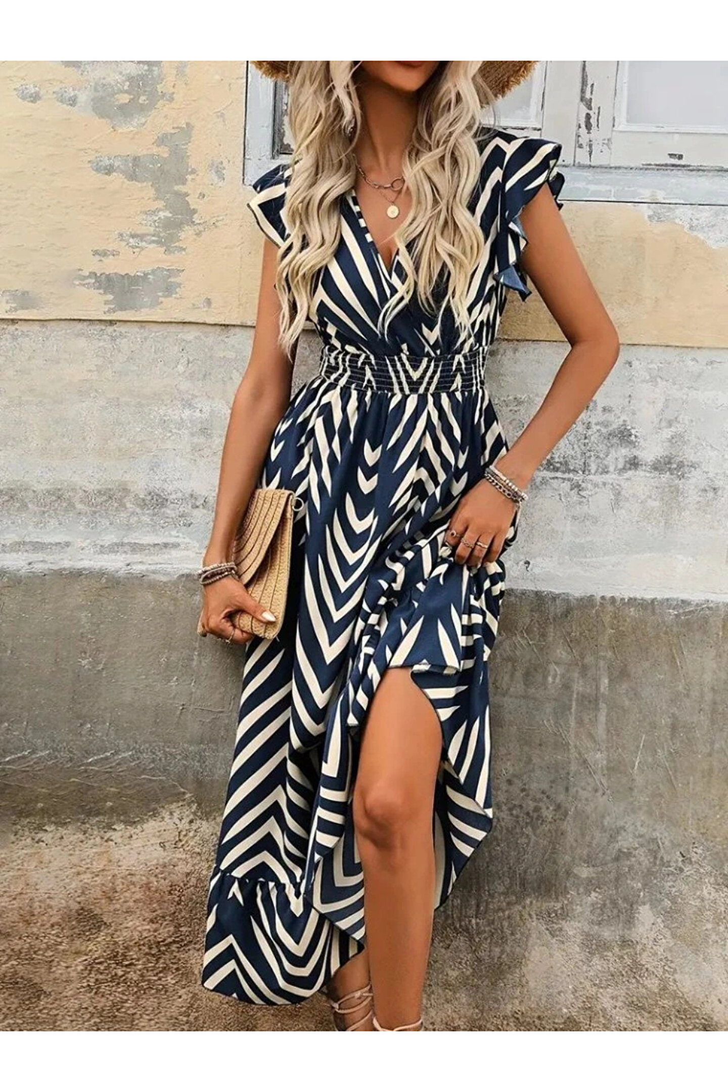 Kadın Kısa Kollu Kruvaze Yakalı Fırfırlı Süprem Elbise
