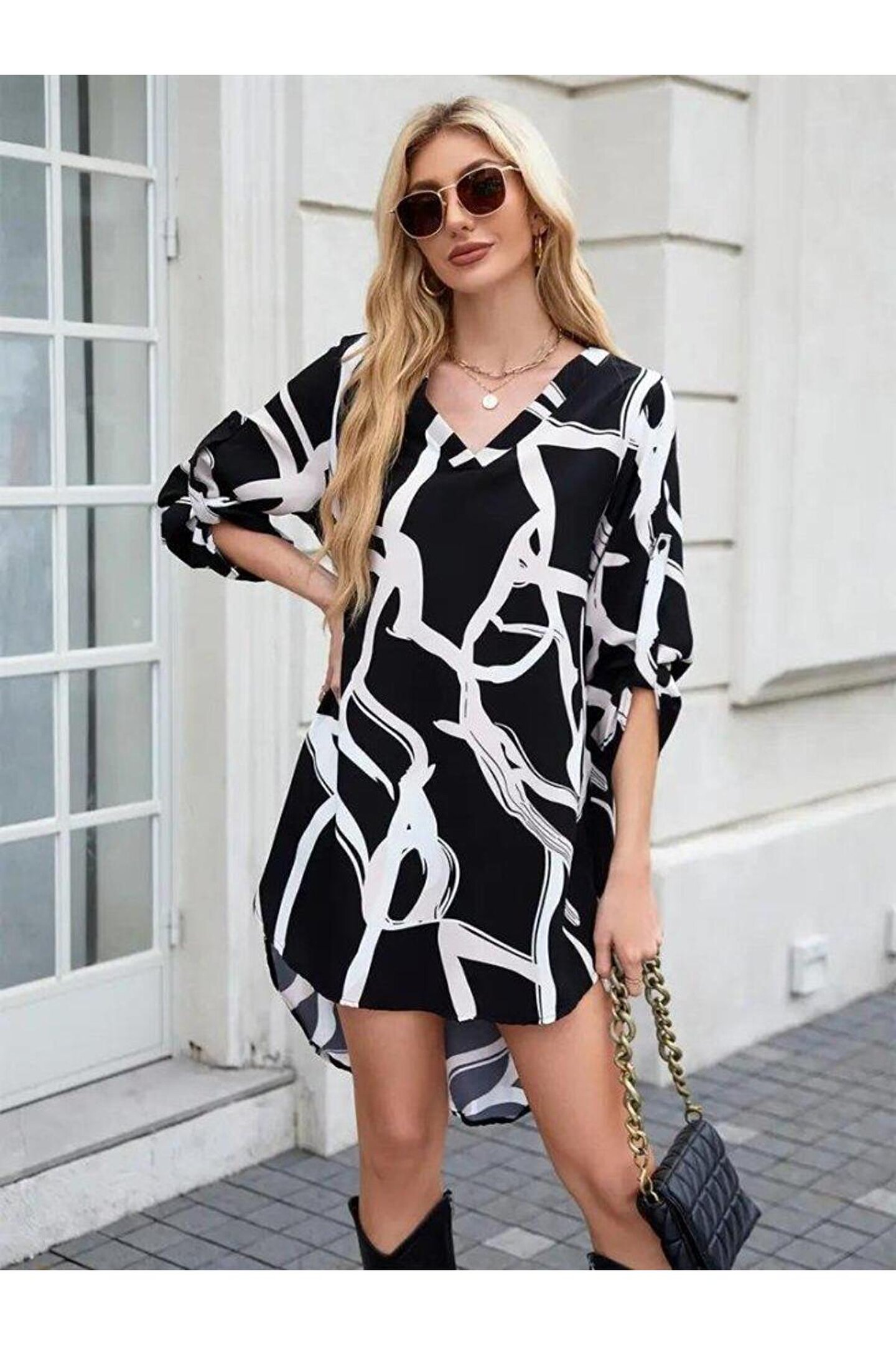 Modelin Ölçüleri: Boy:165, Kg:55, Göğüs:90, Bel:72, Kalça: 100 Modelin üzerindeki ürün M/38 bedendir Trendleri belirleyen kadın giyim markası velmorafashion'a hoşgeldiniz! VelmoraFashion, kadınların tarzlarını ifade etmelerine ve güçlü bir duruş sergilemelerine olanak tanıyan bir markadır.; 2018 yılından bu yana sektörde varlığını sürdüren firmamız, yenilikçi tasarımları ve kaliteli ürünleriyle dikkat çekiyor.; VelmoraFashion olarak amacımız, her kadının kendine özgü tarzını yansıtabileceği, güvenilir ve şık giyim seçenekleri sunmaktır.; Koleksiyonlarımızda her zevke hitap eden parçaları bulabilirsiniz.; Günlük hayatta rahatlıkla tercih edilebilecek şık elbiselerden iş görüşmelerinde stilinizi tamamlayacak takım elbiselere, spor giyimden abiye modellere kadar geniş bir ürün yelpazemiz bulunmaktadır.; Tasarımlarımızı oluştururken moda trendlerini yakından takip ediyor, farklı tarzlara ve bedenlere uygun seçenekler sunmaya özen gösteriyoruz.; Aynı zamanda kalite ve dayanıklılık da önceliklerimiz arasındadır.; Her parça, titizlikle seçilen kumaşlar ve dikkatle işlenen detaylarla özenle üretilmektedir.; Müşteri memnuniyeti bizim için en önemli önceliktir.; Profesyonel müşteri hizmetleri ekibimiz, her adımda size yardımcı olmak ve alışveriş deneyiminizi en üst düzeye çıkarmak için buradadır.; Siz değerli müşterilerimizin geri bildirimleri, bizi daha da ileriye taşımak için önemli bir kaynaktır.; Velmora Fashion olarak, sadece giyimde değil, aynı zamanda kadınların güçlendirilmesi ve kendilerini ifade etmeleri konusunda da bir misyon taşıyoruz.; Her kadının kendi tarzını keşfetmesine ve kendine güvenle adım atmasına yardımcı olmak için buradayız.; VELMORAFAShion'da her detayı düşünülmüş, şıklığı ve rahatlığı bir arada sunan parçalarla dolu koleksiyonlarımızı keşfetmek için sizi mağazamıza bekliyoruz.; Siz de ailemize katılın ve tarzınızı keşfedin!