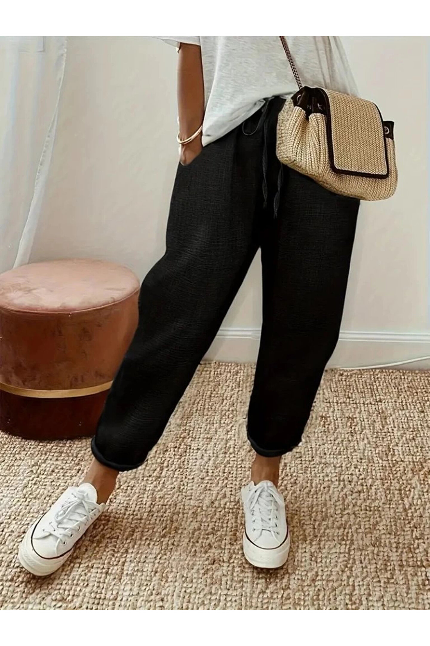 Asil Acar Home Kadın Yüksek Bel Lastikli Belde Bağcık Detaylı Aerobin Pantolon