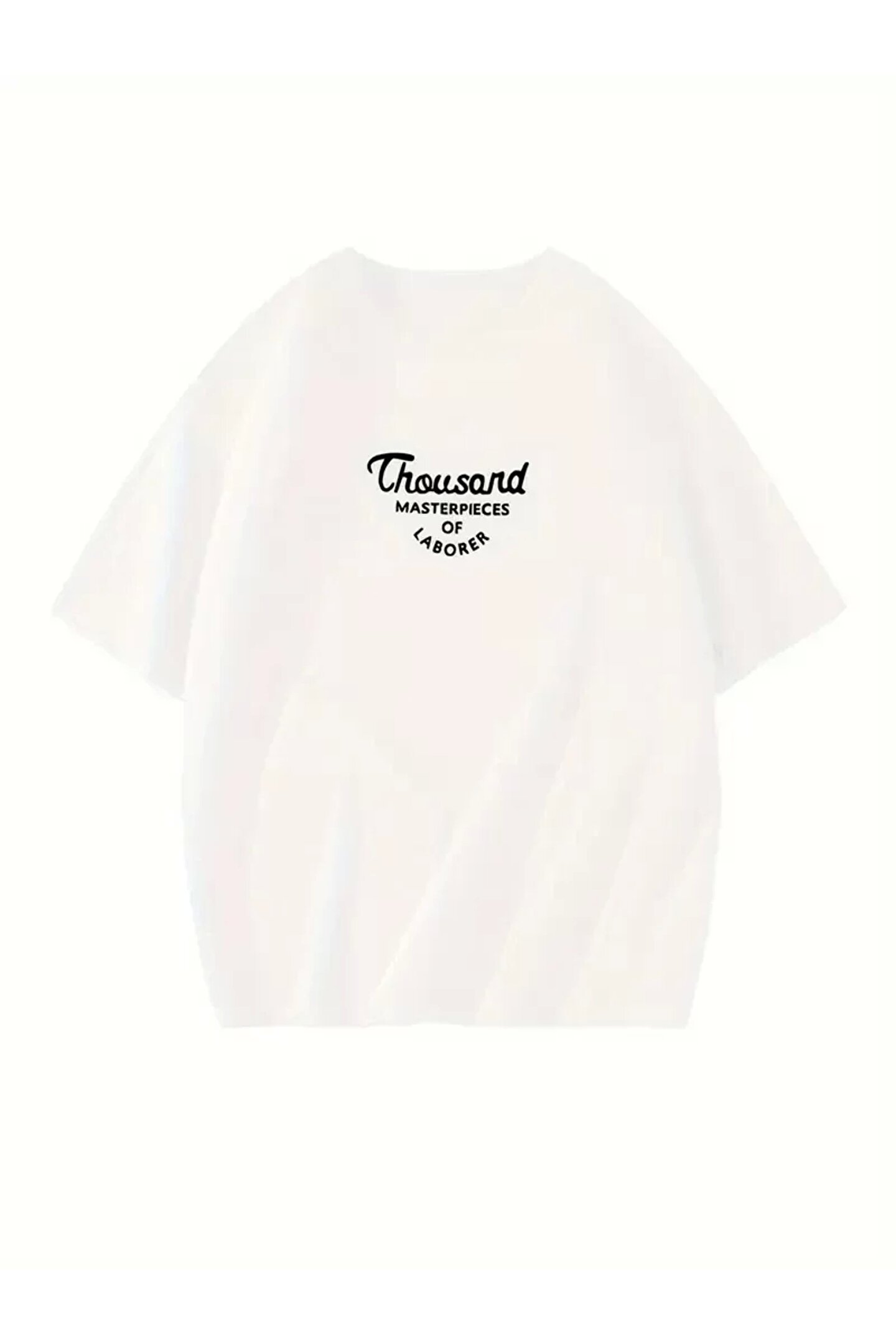 Thousand Baskılı Oversize Bisiklet Yaka T-shirt - Beyaz