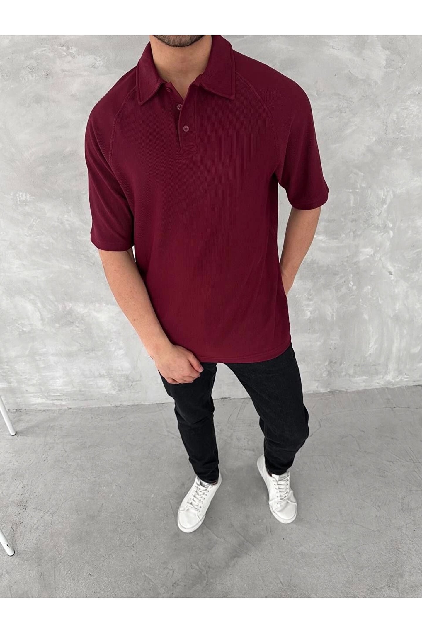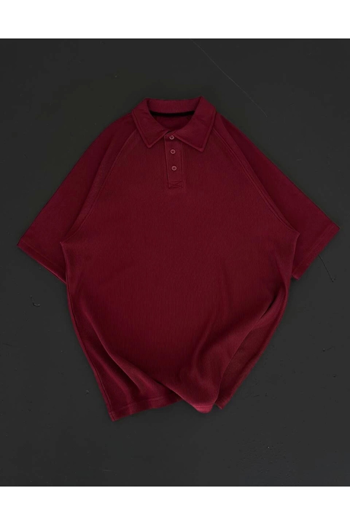 Yakalı Patlı Kısa Kol T-shirt - Bordo