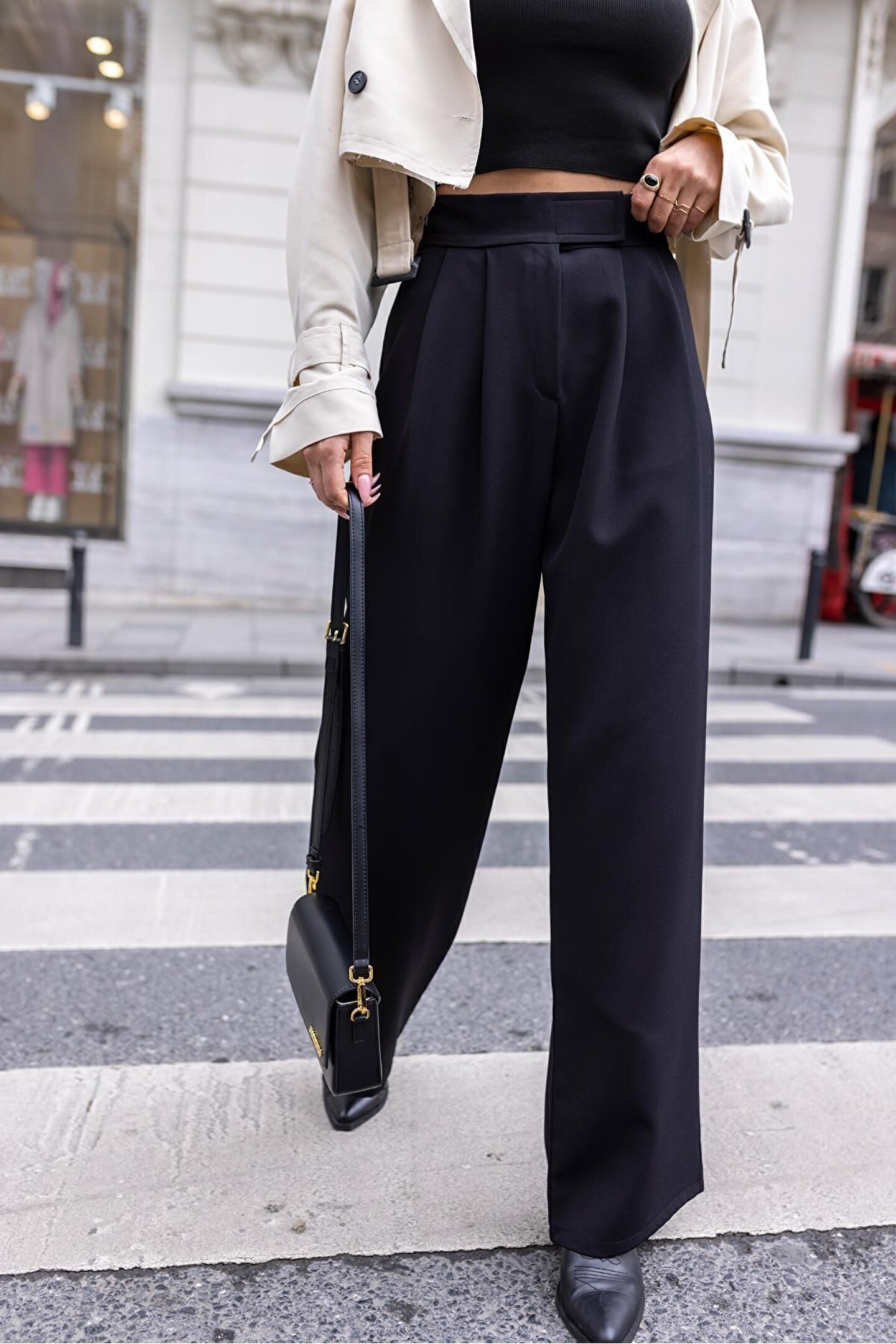 Rahat ve şık bir görünüm için düz desenli siyah renk seçeneğiyle her ortama uyum sağlar; Palazzo kalıbı sayesinde gün boyu konforlu bir kullanım sunar ve geniş paça tasarımı modern bir siluet oluşturur; Polyester materyal kullanımı, dayanıklılığı artırırken aynı zamanda kolay bakım imkanı sağlar; Çift cepli yapısı ile günlük eşyalarınızı yanınızda taşımanız için pratik bir çözüm sunar; Normal bel yüksekliği ve regular boy kesimi ile rahat hareket etme özgürlüğü verir; Recycle+organik sürdürülebilirlik detayları, çevre dostu bir tercih yapmanızı sağlar; Dokuma kumaş tipi, ürünün uzun ömürlü olmasına katkıda bulunurken %90 polyester ve %10 elastan karışımı materyal bileşeni esneklik kazandırır; Wide leg silueti ile trendleri takip eden bir görünüm elde edersiniz; Tüm yaş gruplarına hitap eden tasarımıyla herkes için uygunluk gösterir;