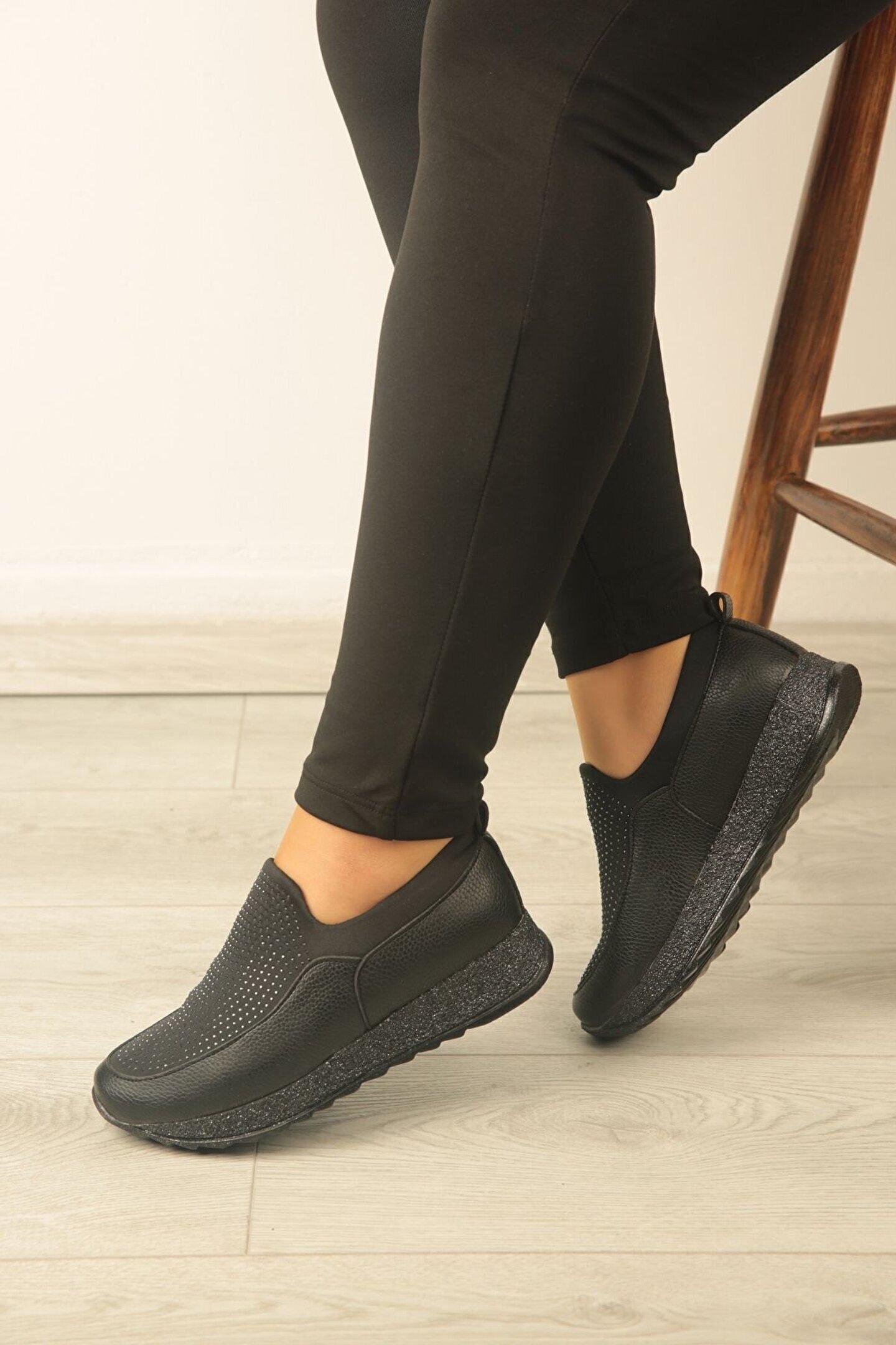 Günlük Ortopedik Ultra Rahat Taşlı Hafif Siyah Kadın Spor Ayakkabı