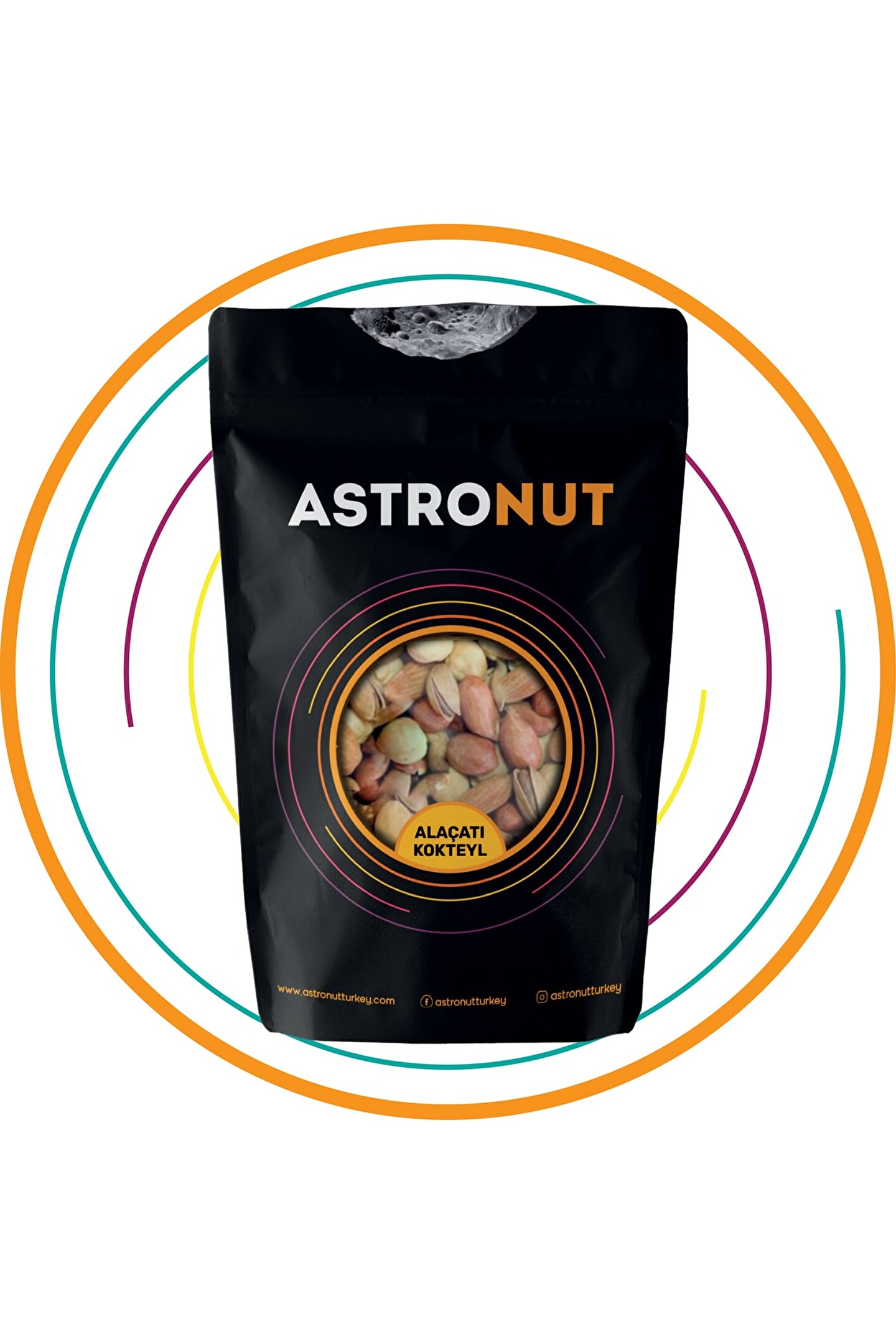 Keyifli anlarınıza eşlik eden ve yediğinizde sizi begonvil çiçekleriyle dolu sokaklarda gezdiren bir lezzet “Alaçatı Kokteyl”; Antep fıstığı, kavrulmuş badem içi, fındık içi ve lezzetli tuzlu fıstığı ile kendine özgü Astronut paketinde;