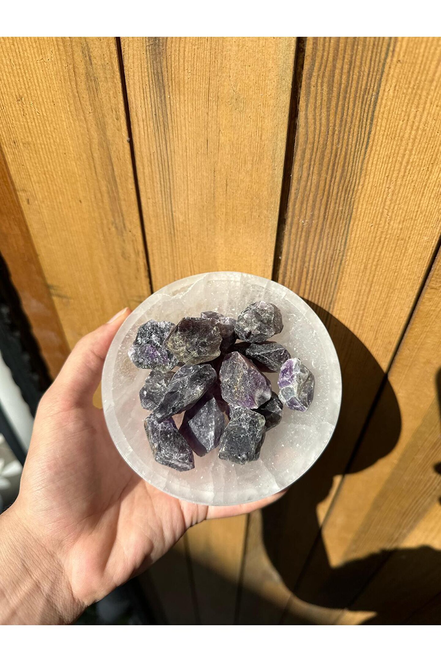 Doğal ametist taşları, her biri benzersiz desen ve renk tonlarına sahip olup, doğanın saf güzelliğini yansıtır; 10 adet ham parça ametist taşı, koleksiyonunuza özgün bir dokunuş ekler ve dekoratif objelerinizde veya takılarınızda kullanmak için idealdir; Düz deseni sayesinde, farklı tasarım ve stillerle kolayca uyum sağlar ve estetik bir görünüm sunar; Ametist taşları, enerji taşı olarak bilinir ve sakinleştirici etkisiyle stres atmak ve meditasyon yapmak için mükemmel bir araçtır;