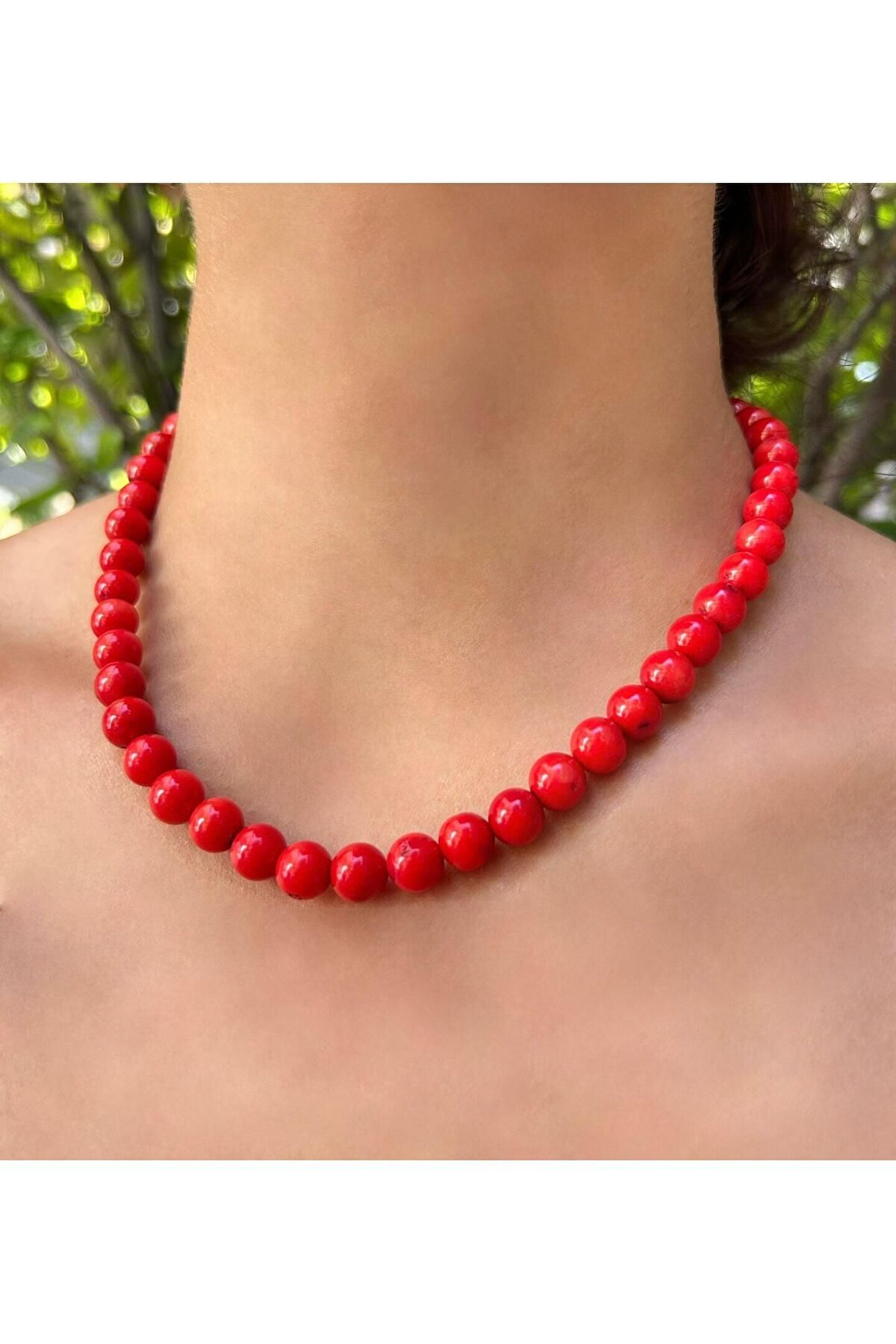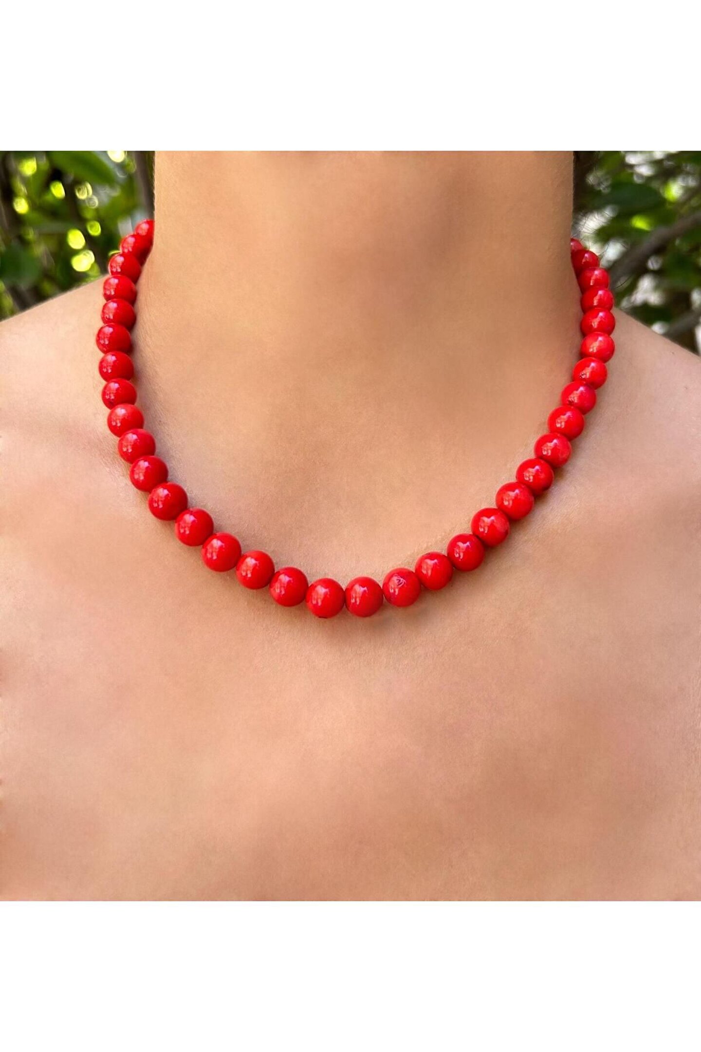 Asya Gems 6 MM Küre Kesim Boyalı Mercan Doğal Taş Kolye