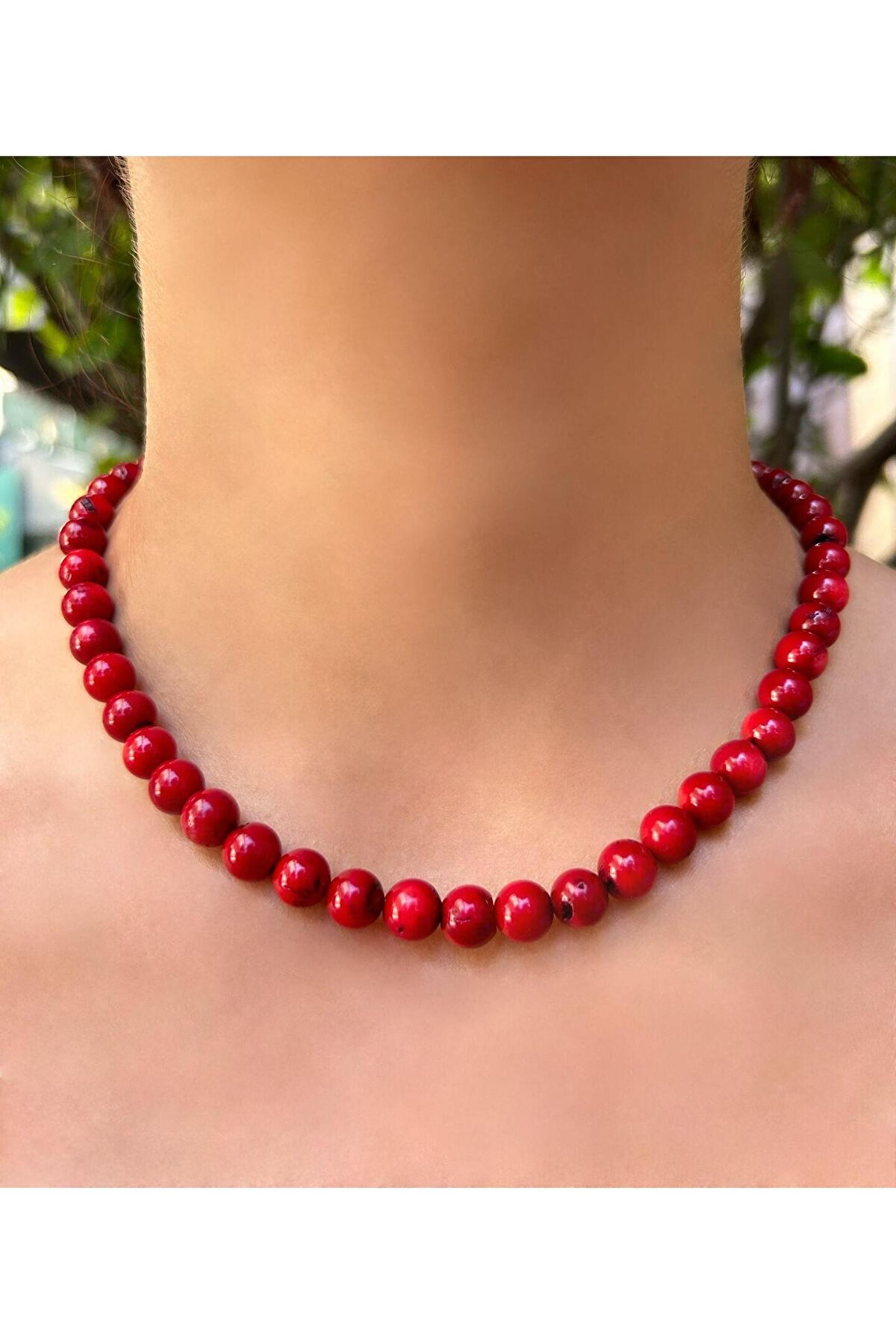 Asya Gems 8-9 MM Küre Kesim Boyalı Mercan Doğal Taş Kolye