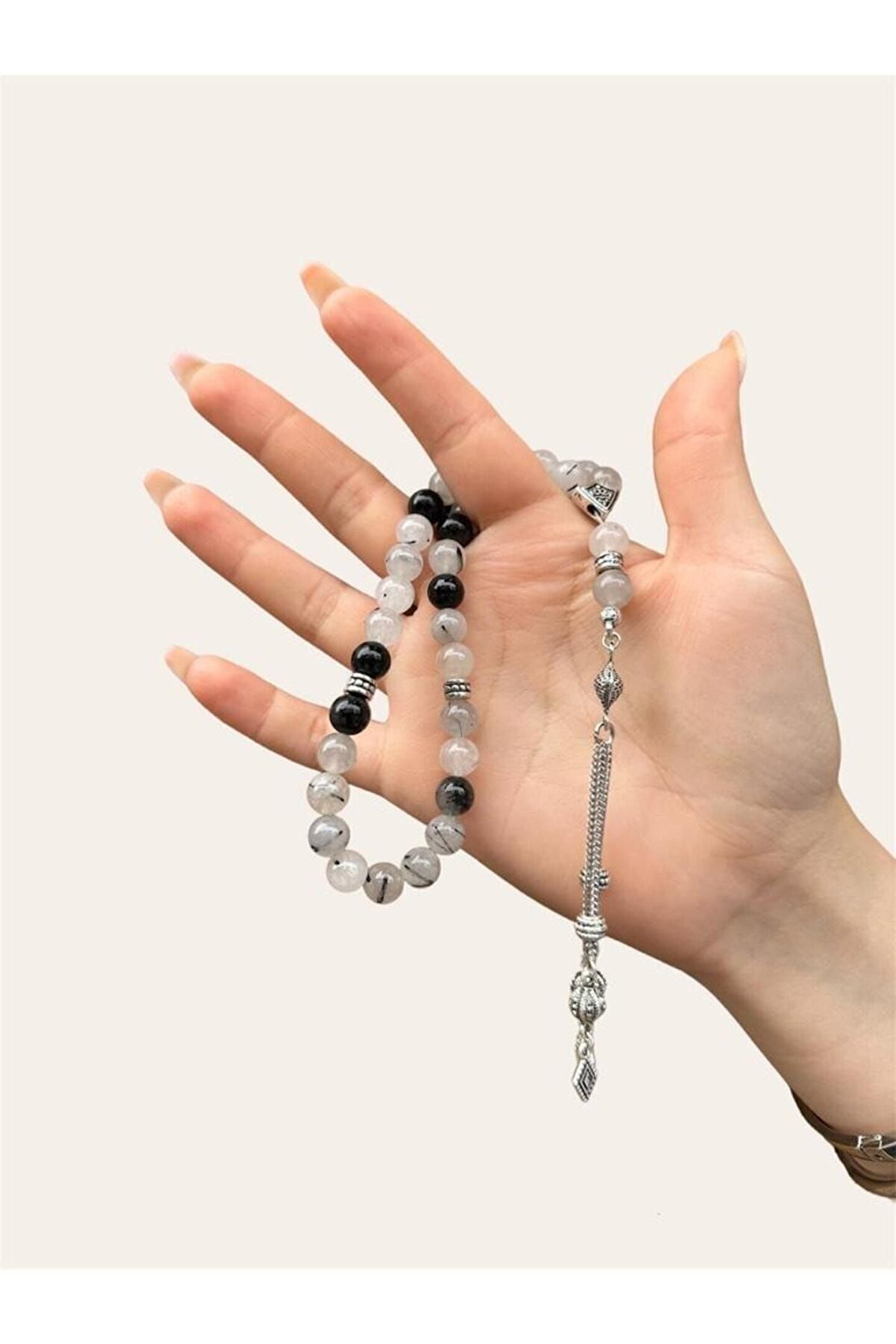 AĞIRLIK – 40,08 gr TANE BOYU – 8 mm TANE ENİ – 8 mm PÜSKÜL UZUNLUĞU – 10 cm TOPLAM UZUNLUĞU – 27,5 cm ( Püskül Dahil ) TANE ADETİ – 33 Adet PÜSKÜL MADDESİ – Bijuteri RUTiLLİ KUVARS / RUTILETED QUARTZ (Telapati Taşı) Rutil Kuvars Taşı, hastalık anında hızlı iyileşmenize yardımcı olur. ; Saçların dökülmesini engeller ve sağlıklı büyümesine yardımcı olur. ; Telepati ve sezgiler üzerinde etkisi vardır. ; NOT: Temsili Fotoğraftır, Ürünümüz Doğal Taş Olduğundan Renklerinde , Ağırlıklarında ve Boyutlarında Küçük Değişiklikler Olabilir.;