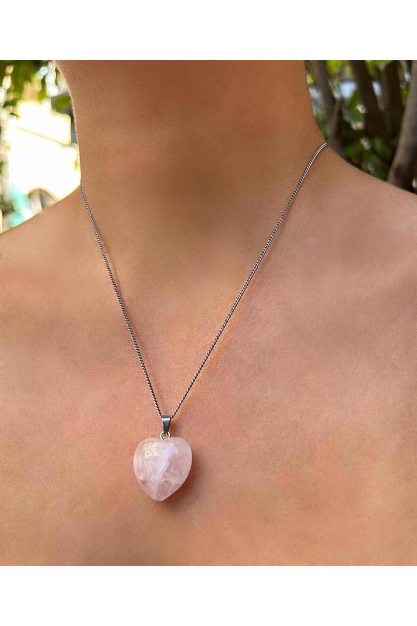 Doğal taş kullanımı sayesinde her kolye benzersiz ve otantik bir görünüm sunar; Pembe kuvars taşı, zarif ve feminen bir dokunuşla stilinizi tamamlar; Bombeli kalp modeli, hem günlük kullanım hem de özel günler için ideal bir aksesuar seçeneği oluşturur;