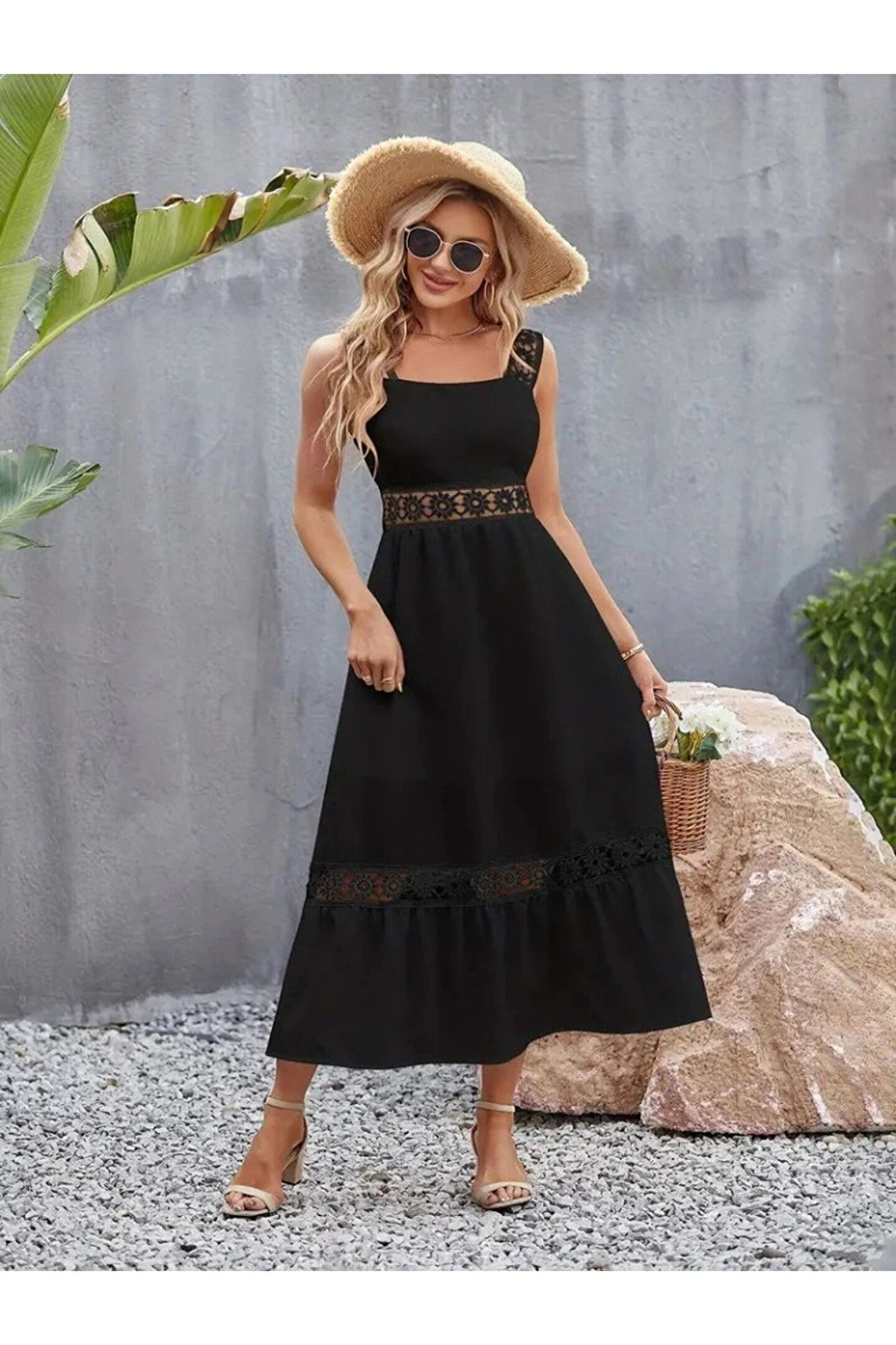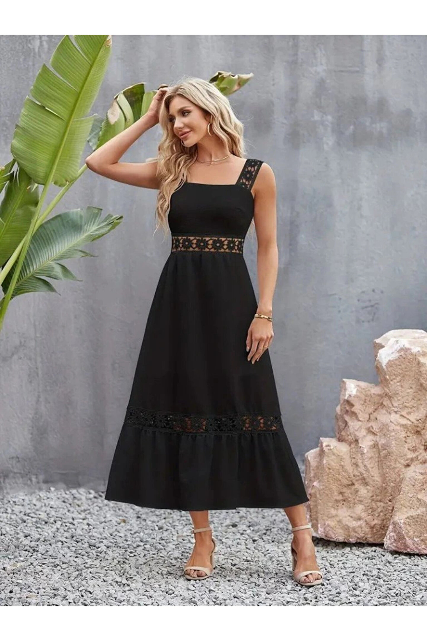 - Zarif dantel detayları ile süslenmiş, feminen bir görünüm sunar.; - Askılı tasarımı sayesinde yaz ayları için ideal konfor sağlar.; - Asimetrik kesimiyle modern ve şık bir siluet oluşturur.; - Kemersiz yapısı rahat hareket etme özgürlüğü tanırken, kloş kalıbı vücut hatlarını nazikçe sarar.; - Astarsız olması hafifliği artırarak gün boyu rahatlık sunar.; - 3 iplik şardonlu dokuma tipi dayanıklılığı ve yumuşak dokunuşu garanti eder.; - %70 polyester, %20 pamuk ve %10 elastan karışımından oluşan materyali esneklik kazandırır.; - Casual koleksiyona ait bu elbise günlük kullanım için uygundur; işlevsellik ve stilin mükemmel uyumunu sergiler.; - Orta kalınlığındaki kumaşı mevsim geçişlerinde de tercih edilebilir konfor sağlar.; - Yırtmaç detayı pratik kullanım imkanı sunarken aynı zamanda estetik bir dokunuş katmaktadır.; - 3 iplik şardonlu krep kumaşı hem dayanıklılık hem de şık görünüm vaat eder.; - Uzun boyuyla zarafeti ön plana çıkaran bu elbise her ortamda göz alıcı olmanızı sağlar.; - Standart kol tipine sahip olmasıyla günlük aktivitelerinizde size eşlik ederken, truvakar kol detaylarıyla farklılık yaratır.; - Kare yaka tasarımının sofistike duruşuyla boynunuzu zarifçe çerçeveleyerek feminenliğinizi pekiştirir.; - Krep malzemeden üretilmiş olması hem kaliteyi hem de uzun ömürlülüğü beraberinde getirir.