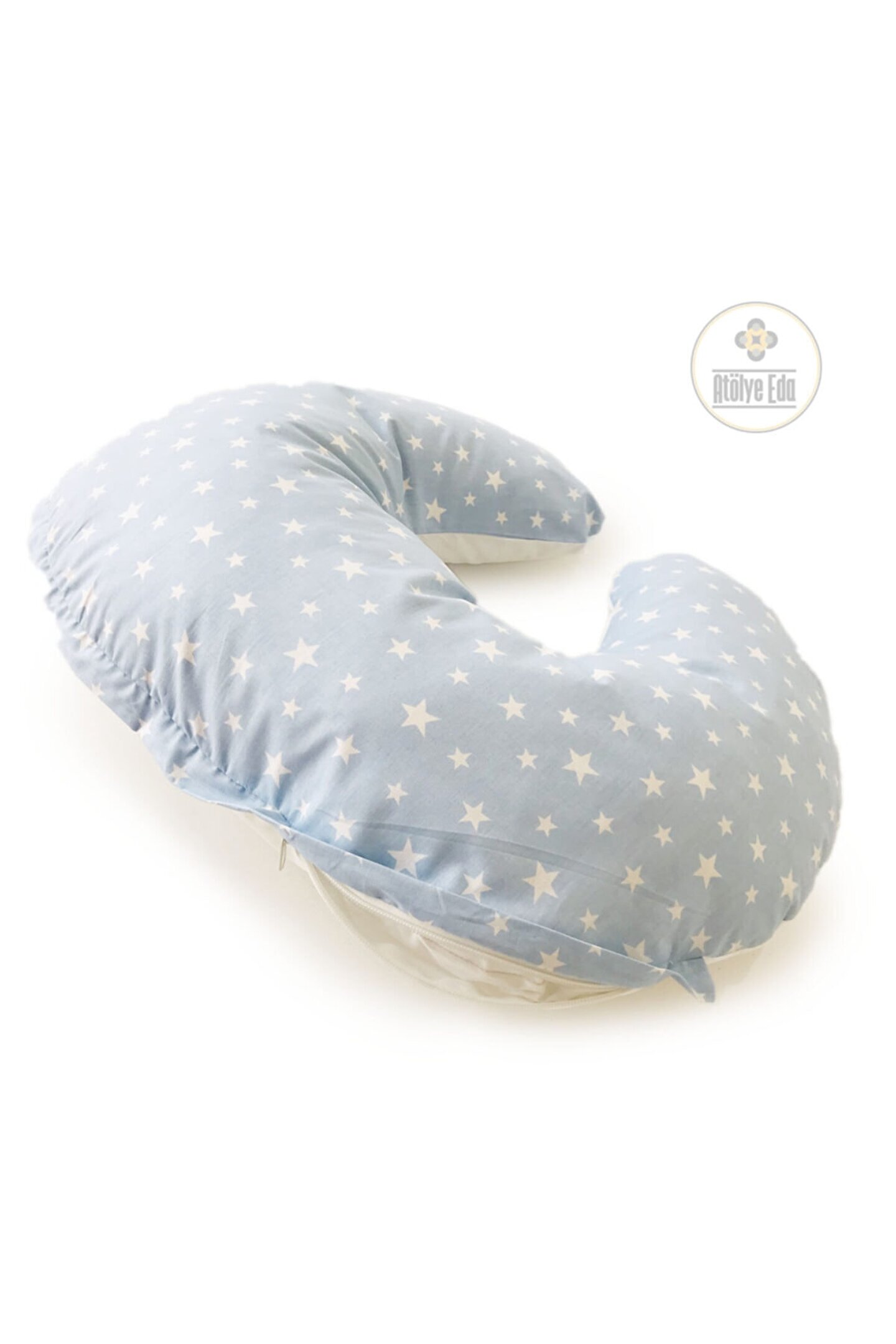 Atölye eda emzirme yastığı Ana kumaş ve iç kılıfı %100 pamuklu kumaştan imal edilmiştir. Ölçüleri; en 55cm, boy 50cm, yükseklik 20cm 1 adet emzirme yastığı (yastık dış kılıfı, yastık iç kılıfı) Iç kılıf içi birinci sınıf silikon boncuk elyaf dolguludur. Iç kılıf ve ana kumaş arası fermuarlı olup kolaylıkla yıkanabilir. Fermuar üstü kapalı çalışılmış olup rahatsız etmez. 30 derecede sıvı deterjan ile hassas yıkama önerilir.