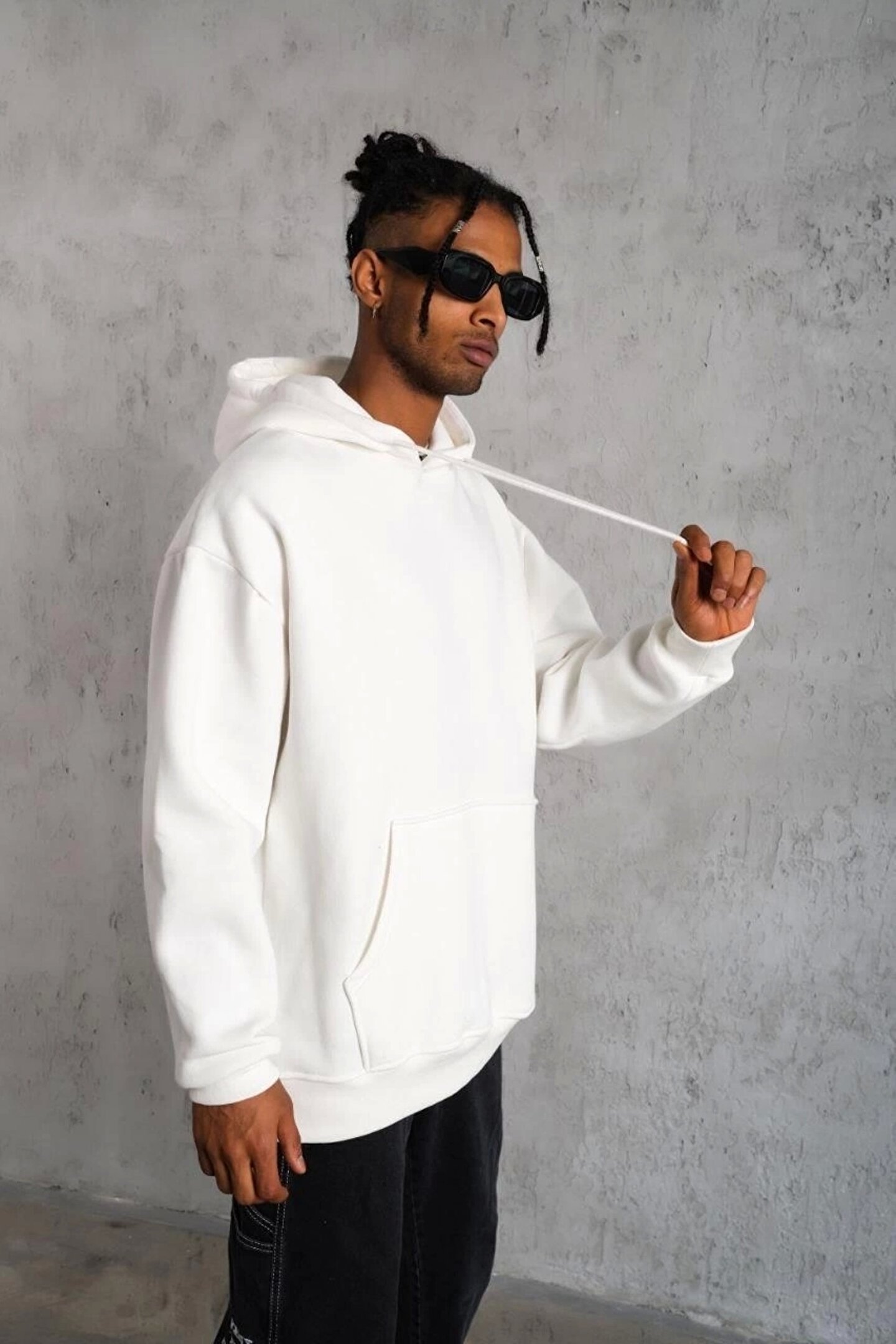 ATREAS Erkek Düz Kapüşonlu Sweat - Beyaz