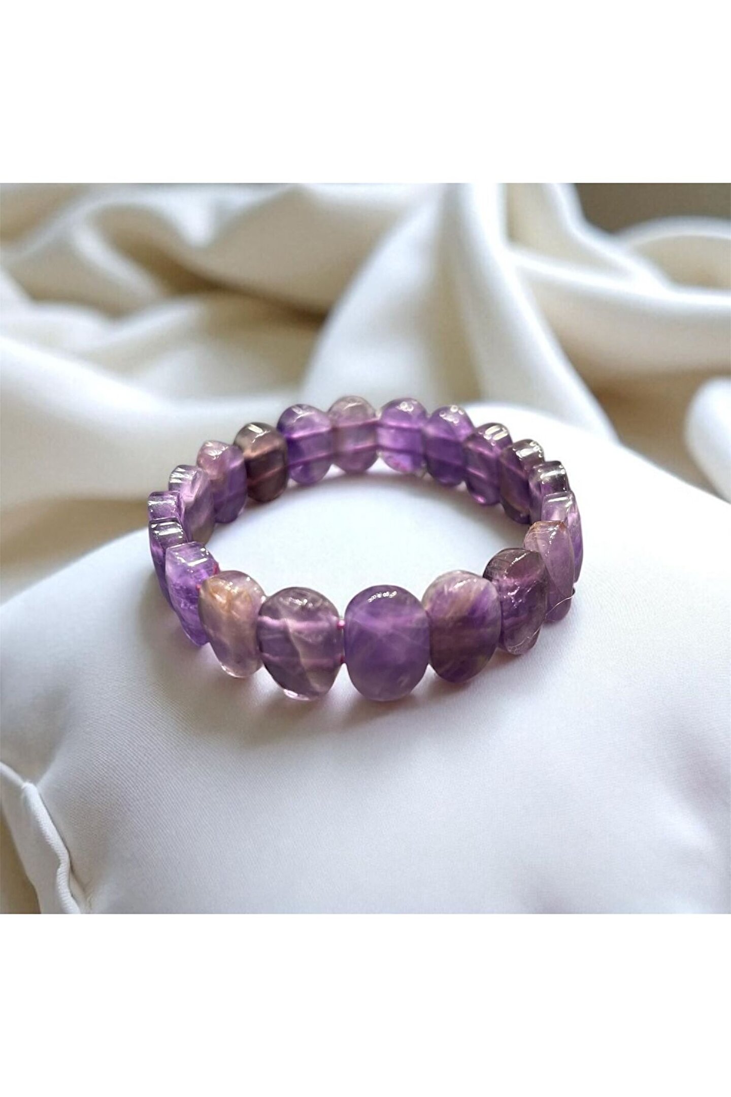 - Ürünümüz, doğal taşların özellik ve anlamlarını içeren açıklayıcı broşürümüz ve kutusu ile birlikte gönderilmektedir - Nemli bir bez kullanarak kolayca temizlenebilir, böylece bilekliğinizi her zaman yeni gibi tutabilirsiniz.; - Türkiye'de üretilmiş olup yerel malzemelerden elde edilmiştir, bu da hem kaliteyi hem de sürdürülebilirliği garanti eder.; - Ametist taşı sayesinde enerjik ve pozitif bir etki yaratırken aynı zamanda estetik bir dokunuş sağlar.; - İpek ip materyali ile hafif ve konforlu bir kullanım deneyimi sunarken dayanıklılığından ödün vermez.; - Ametist, aşk taşıdır.; Negatif elektrik yükü taşıdığından bedendeki fazla elektrik yükünü toplayarak pozitif enerjiye dönüştürür.; Depresyona faydalıdır.; Şifa bakımından en güçlü taştır.; Cilt göz hastalıklarına, alerjik, ve baş ağrılarına, kalp rahatsızlıklarına iyi gelir.; Uykusuzluğa iyi gelir.; Pembe kuvarsla birlikte kullanıldığında aklı güçlendirir ve kalbi korur.