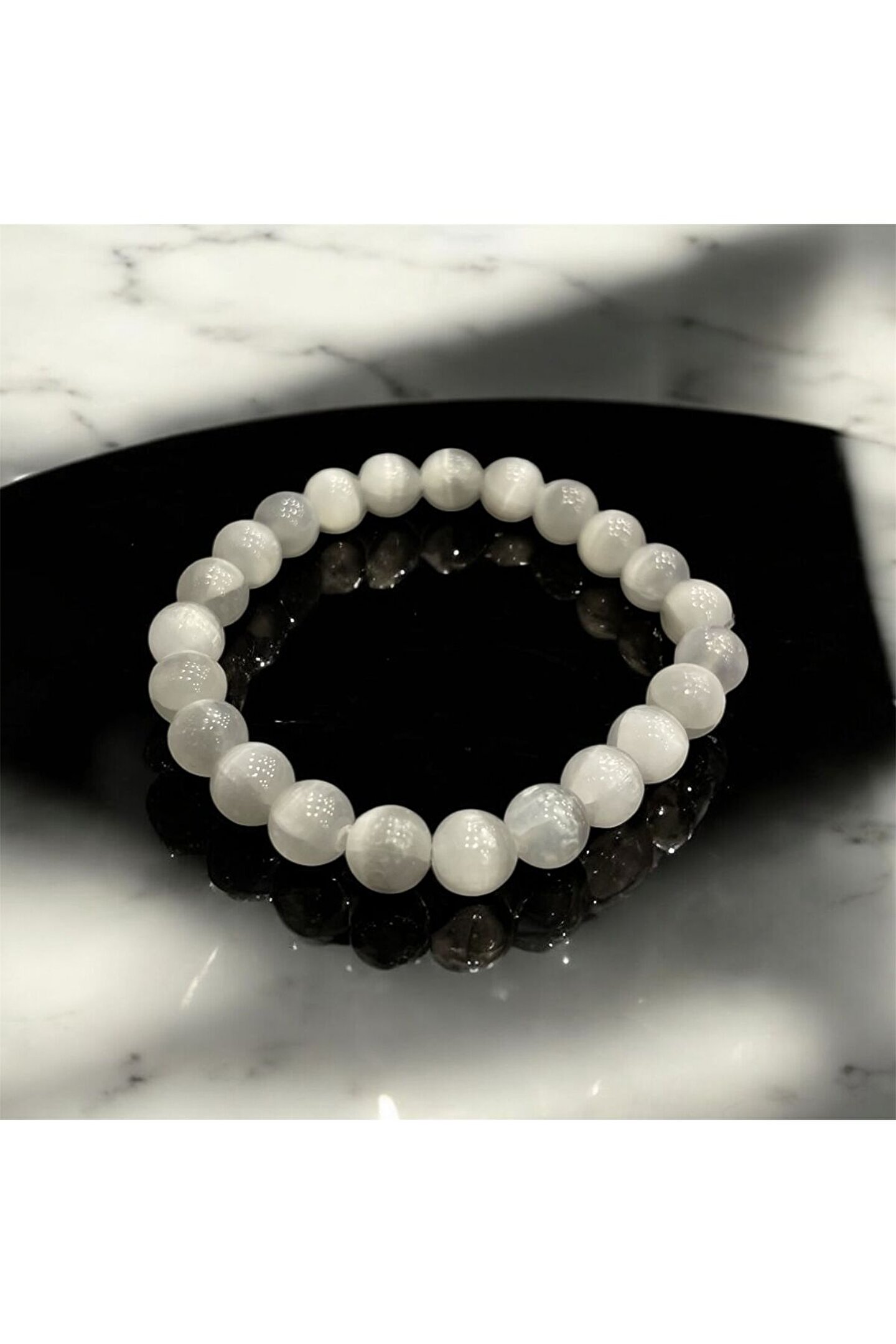 - Ürünümüz, doğal taşların özellik ve anlamlarını içeren açıklayıcı broşürümüz ve kutusu ile birlikte gönderilmektedir - Selenit doğal taşından üretilmiş, her bir bileklik benzersiz bir güzellik sunar.; - 8mm çapındaki taşlar, zarif ve şık bir görünüm sağlar.; - Gençlerin enerjisine hitap eden tasarımıyla dikkat çeker.; - Hem kadınlar hem de erkekler için uygun unisex bir aksesuar seçeneği sunar.; - Türkiye menşeli olup, yerel üretimle desteklenmektedir.; - Nemli bir bezle kolayca temizlenebilir; böylece bilekliğiniz her zaman ilk günkü gibi kalır.; - Selenit, sağlıklı bir aura için önemlidir.; Olumsuz enerjilerden korur, çevredeki negatif enerjiyi temizler.; Kişinin etrafını gözlemlemesi ve sükunetini bulmasına yardım eder.; Ağrıları dindirir ve kas spazmlarına iyi gelir.;