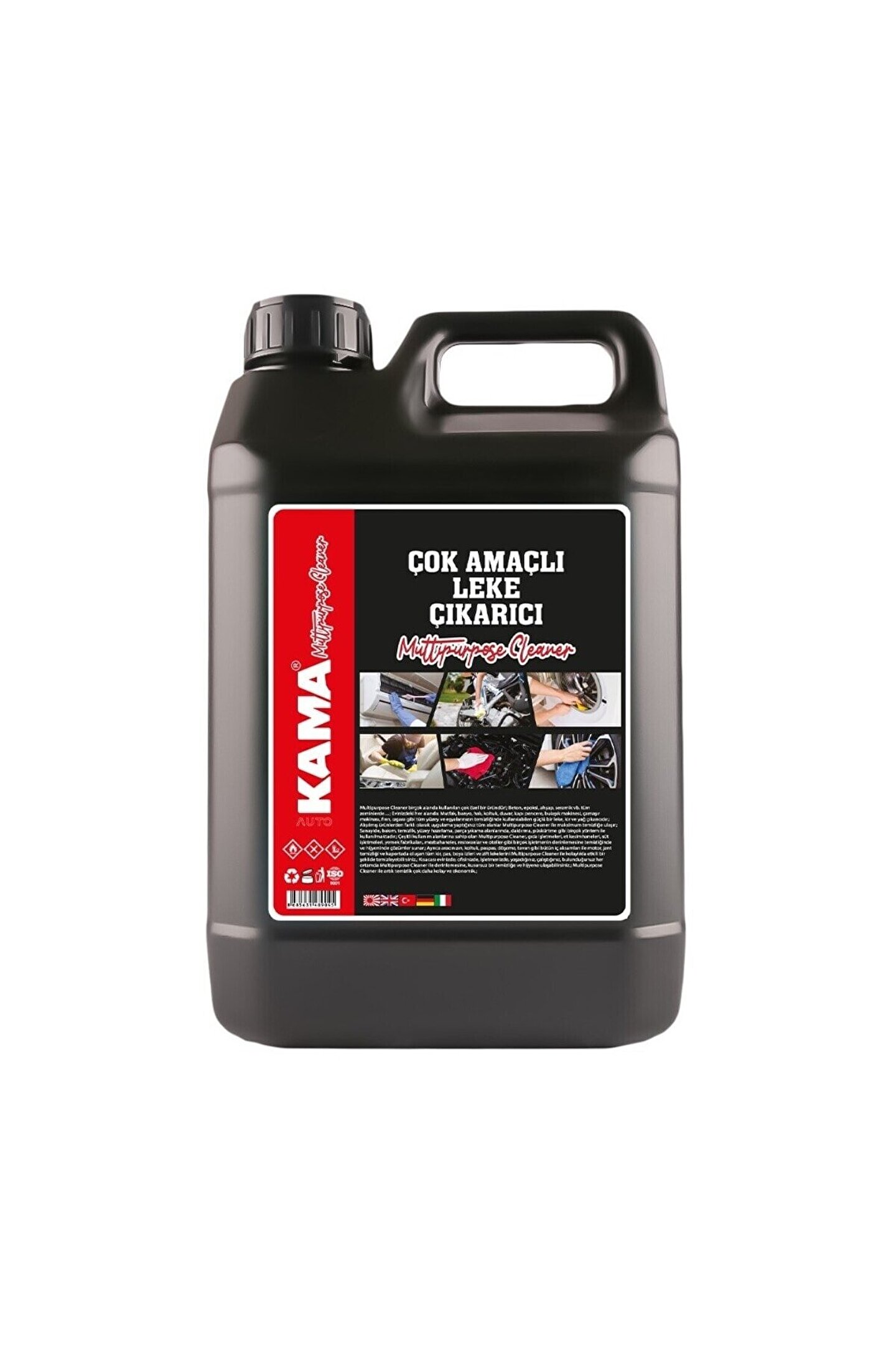 AUTOKAMA ÇOK AMAÇLI LEKE ÇIKARICI 5 Litre(MULTIPURPOSE CLEANER) • Solvent içermeyen, hassas damıtıcı maddeler içeren özel bir temizlik ürünüdür. ; • En inatçı kirleri bile kolay bir şekilde söker. ; • Çok yönlü kullanım alanları sağlar. ; • Kokusuz ve Alkolsüzdür. ; • Renkleri korur, soldurmaz. ; • Suyla karıştırılmadan direk kullanılır. ; • Suya dayanıklı her yüzey için uygundur. ; Aracınızın kirli yüzeyleri (Motor-jant-döşeme-paspas) Evinizdeki Yünlü, pamuklu, sentetik kumaşlar, renkli ve beyaz çamaşırlar, halı, kilim, tül, perde, koltuk ve kanepe döşemelerindeki leke ve kirlere karşı etkilidir. ; KULLANIM TALİMATI: • Temizlenecek ayakkabı ve yüzeylere sıktıktan sonra mikrofiber bez yardımı ile siliniz. ; • Yoğun lekelerde fırça ile müdahale ederseniz 2 kat etkili çözüm alırsınız. ; • İnatçı lekeler için gerek görüldüğü taktirde işlemi tekrarlayın. ; • Halı ve Kilimde oluşan lekeler için ürünü püskürttükten sonra durulayın ve elektrik süpürgesi ile çekme işlemini gerçekleştirin. ; • Kıyafetlerinizin üzerine dökülen lekelere direk uygulayıp makine de veya elde yıkayabilirsiniz. ; • Daha önceden farklı bir ürün ile müdahale edilmiş ve yıkanmış elbiselerdeki lekeler için %100’lük çözüm sunmaz. ; • Bu oran %80 - %90 dolaylarına düşmektedir. ; • Halı ve koltuklarda da direk lekenin üzerine püskürterek bezle silerek durulayın. ; • Yüzeyde artık maddeler bırakmaz ve renk vermez. ; KULLANIM ALANLARI: • Tüm yıkanabilir ve silinebilir tekstil ve kıyafetler üzerindeki lekelerin çıkarılması için kullanılabilinir. ; • Ayakkabı ve tabanlarının, bez çantaların üzerindeki kir ve lekeleri çıkarmak için de kullanılabilir. ; • Halı ve Kilim ’de oluşan tüm inatçı lekelerde etkilidir. ; • Yün, ipek, bambu ve diğer tüm halı çeşitlerinde kullanılabilir. ; • Renk ve dokuya zarar vermez. ; • Masa, koltuk, perde, çarşaf ve diğer ev tekstili ürünlerinde oluşmuş tüm lekelerde kullanılabilir. ; • Araçların içinde oluşan lekeler üzerinde de kullanabilirsiniz. ; • Ahşap yüzeyde toz almada ve plastik doğrama yüzeylerinde dış etkenlerden oluşan ağır kirlerin temizliğinde de kullanılabilir. ; • Ev ve iş yerlerinde, tüm yıkanabilen yüzeylerin yağlı ve inatçı kirlerin temizliğinde kullanılan genel ve güçlü bir temizleyicidir. ; • Mutfakta fırınlarda, davlumbazlarda, ızgaralarda yağların en büyük düşmanıdır. ; • Malzeme uyumluluğu mükemmeldir • Plastik, conta, lastik, kauçuk ve hassas metal yüzeylere zarar vermez ve korur. ; • Fosfat içermez. ; • Sağlığı tehdit eden buhar oluşturmaz ve solunum yollarına zarar vermez • Ekoloji: OECD (ekonomik kalkınma ve işbirliği örgütü) standartlarına uygun bir temizleme malzemesidir, doğada biyolojik olarak çözünür. ; • Ambalajı HDPE olduğundan yeniden değerlendirilebilir. ; • Geri dönüşüm için şişeyi suyla yıkayın.;