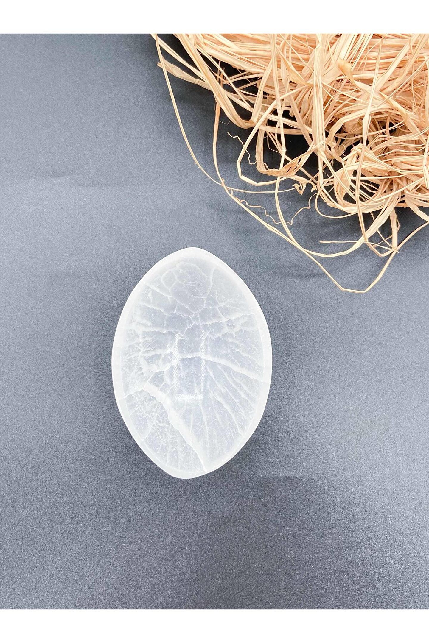 Selenit taşı, doğal güzelliğiyle dikkat çeken şeffaf kristal benzeri yapısıyla öne çıkar.; 10 cm boyutuyla küçük ve şık bir tasarıma sahiptir, her türlü dekorasyona uyum sağlar.; Selenit taşı, benzersiz parlaklığı ve şeffaflığı ile göz alıcı bir aksesuardır.; Bu kase, hem dekoratif amaçlı kullanılabilir hem de küçük eşyaları saklamak için idealdir.; Selenit taşı doğal bir malzemedir ve zarifliğiyle mekanınıza doğanın enerjisini taşır.;