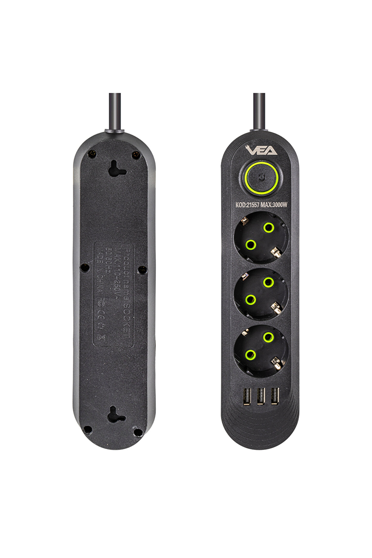3000 Watt 1.5 Metre Siyah Uzatma Kablosu Aşırı Yük Koruması