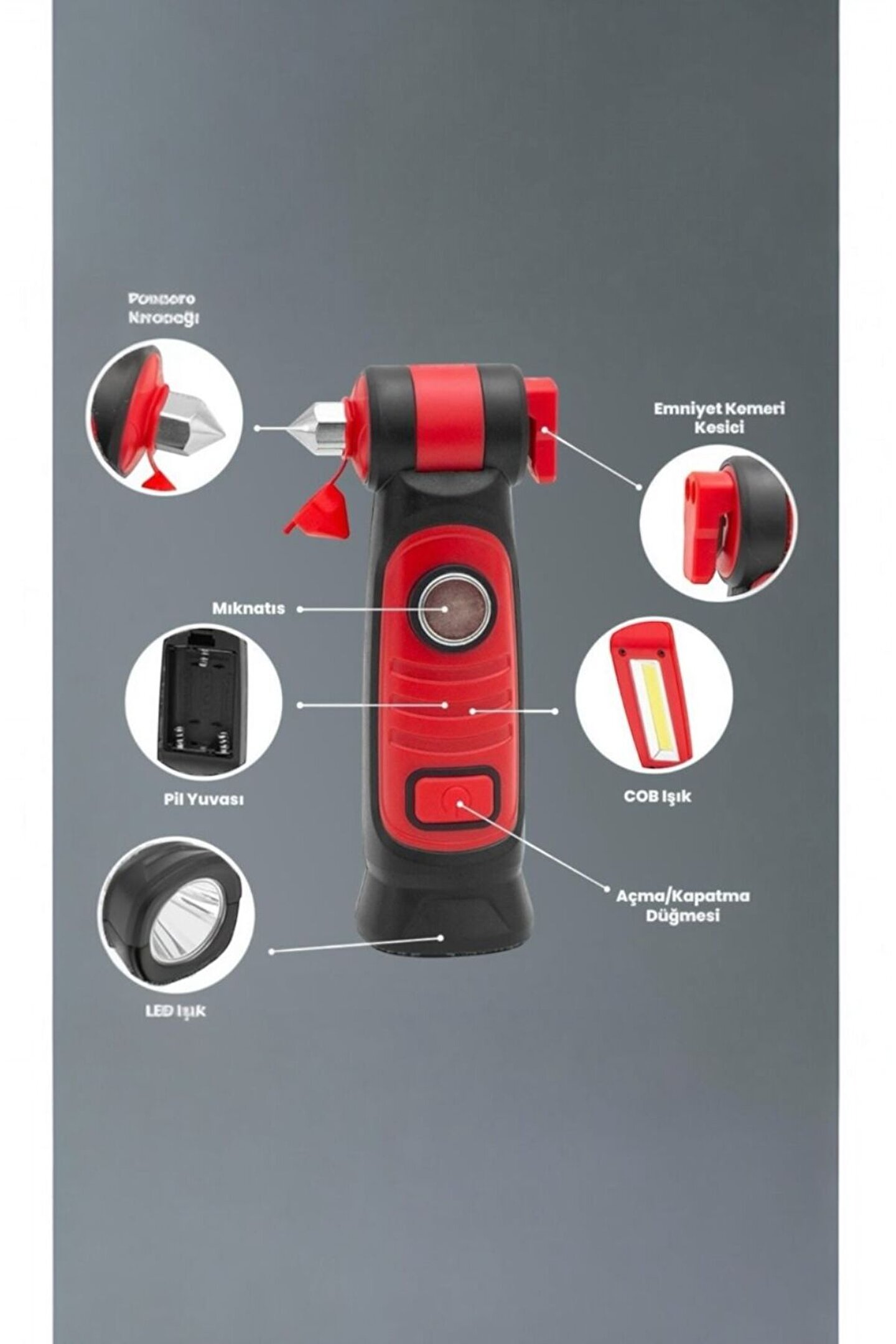 • Çok Fonksiyonlu Özellikleri: Emniyet Kesmeri Keseceği, Cam Kıracağı, Askılık, Mıknatıs