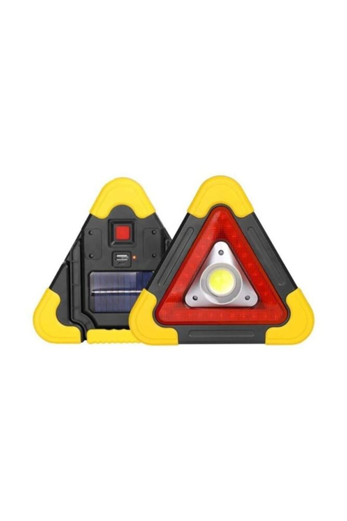 - 500 Lümen Solar Şarjlı Çok Fonksiyonlu Üçgen Reflektör Işıklı İkaz Lambası