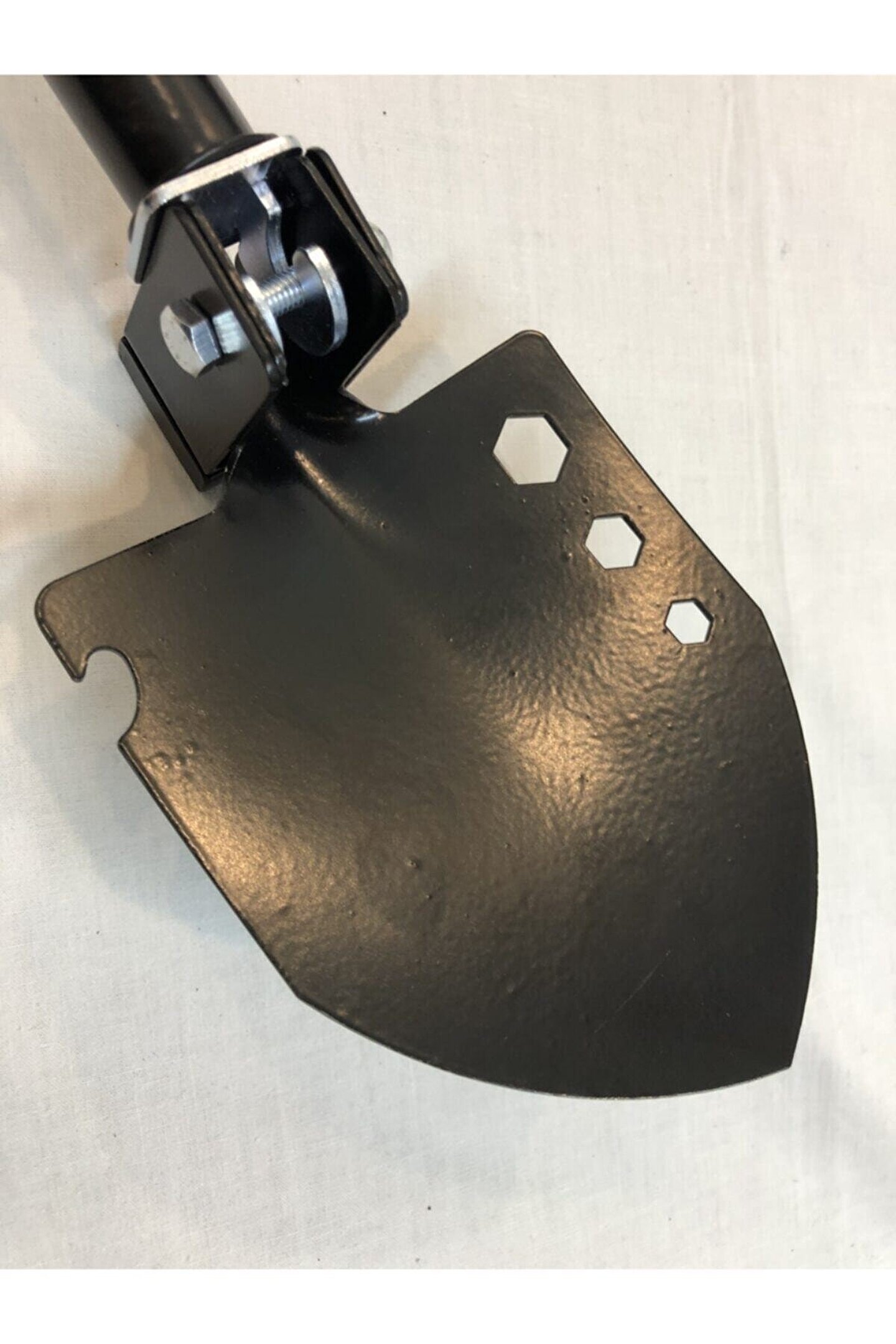 Özel olarak tasarlanıp üretilmiş paslanmaz çelik katlanabilir kamp küreği.