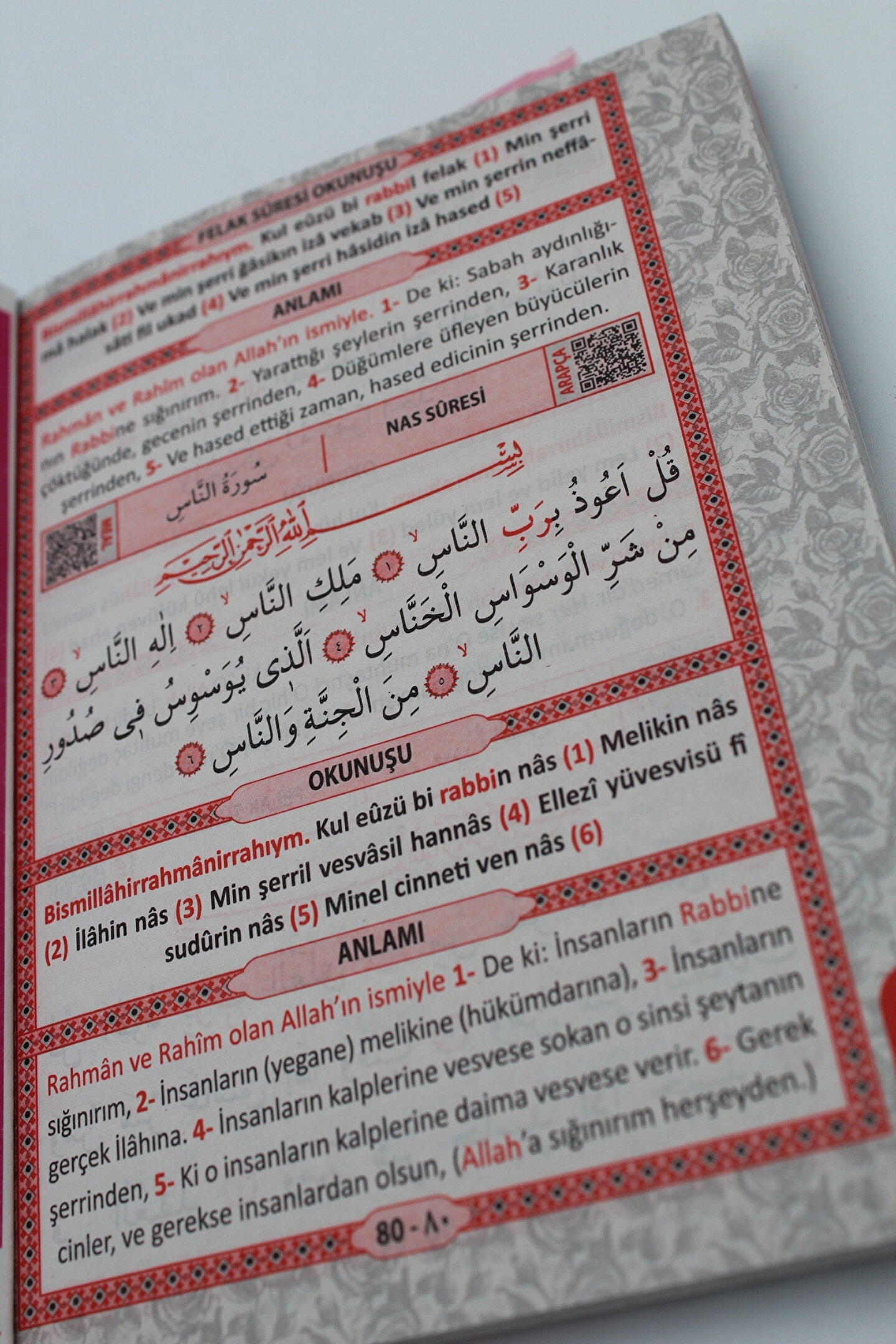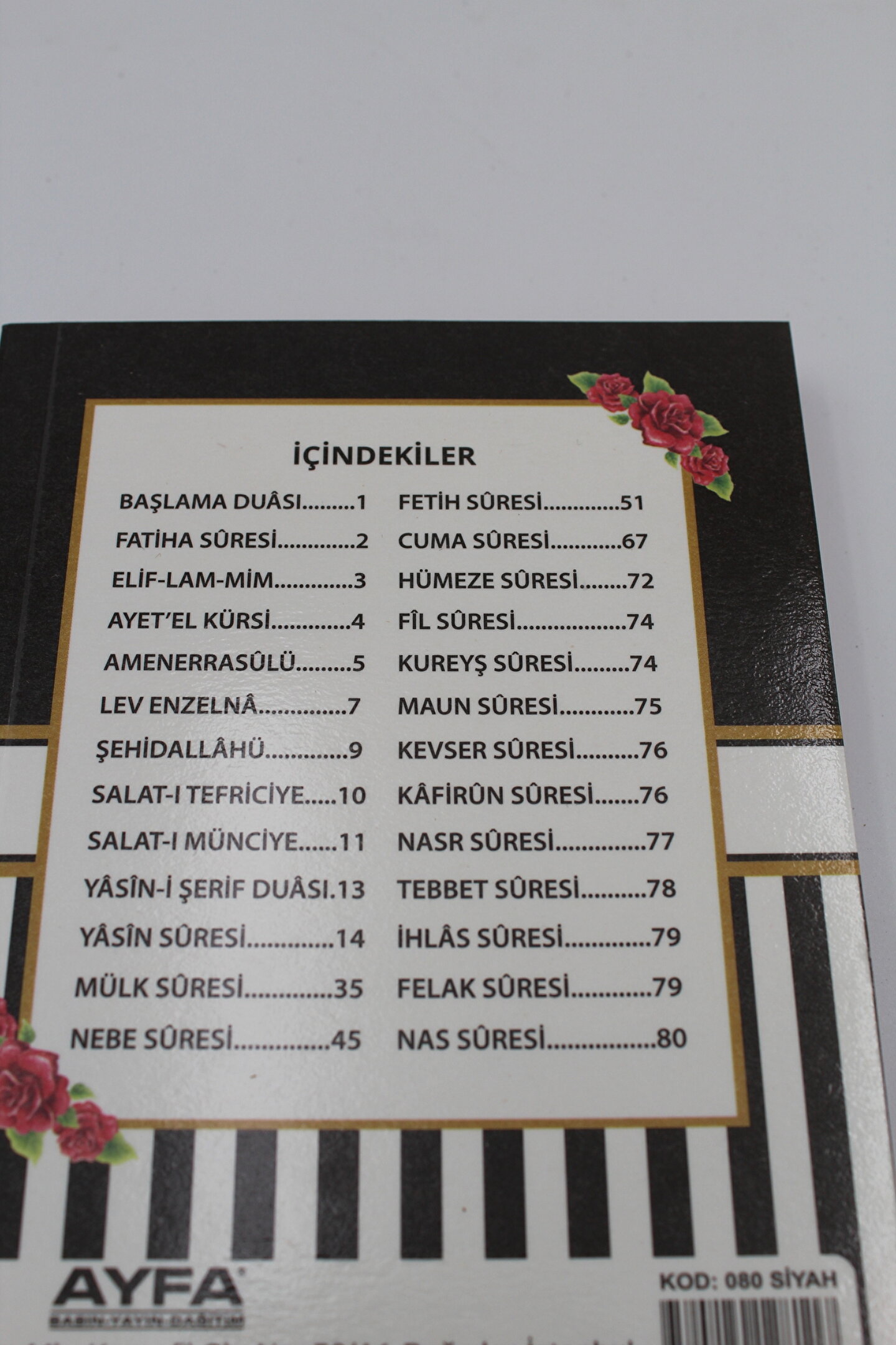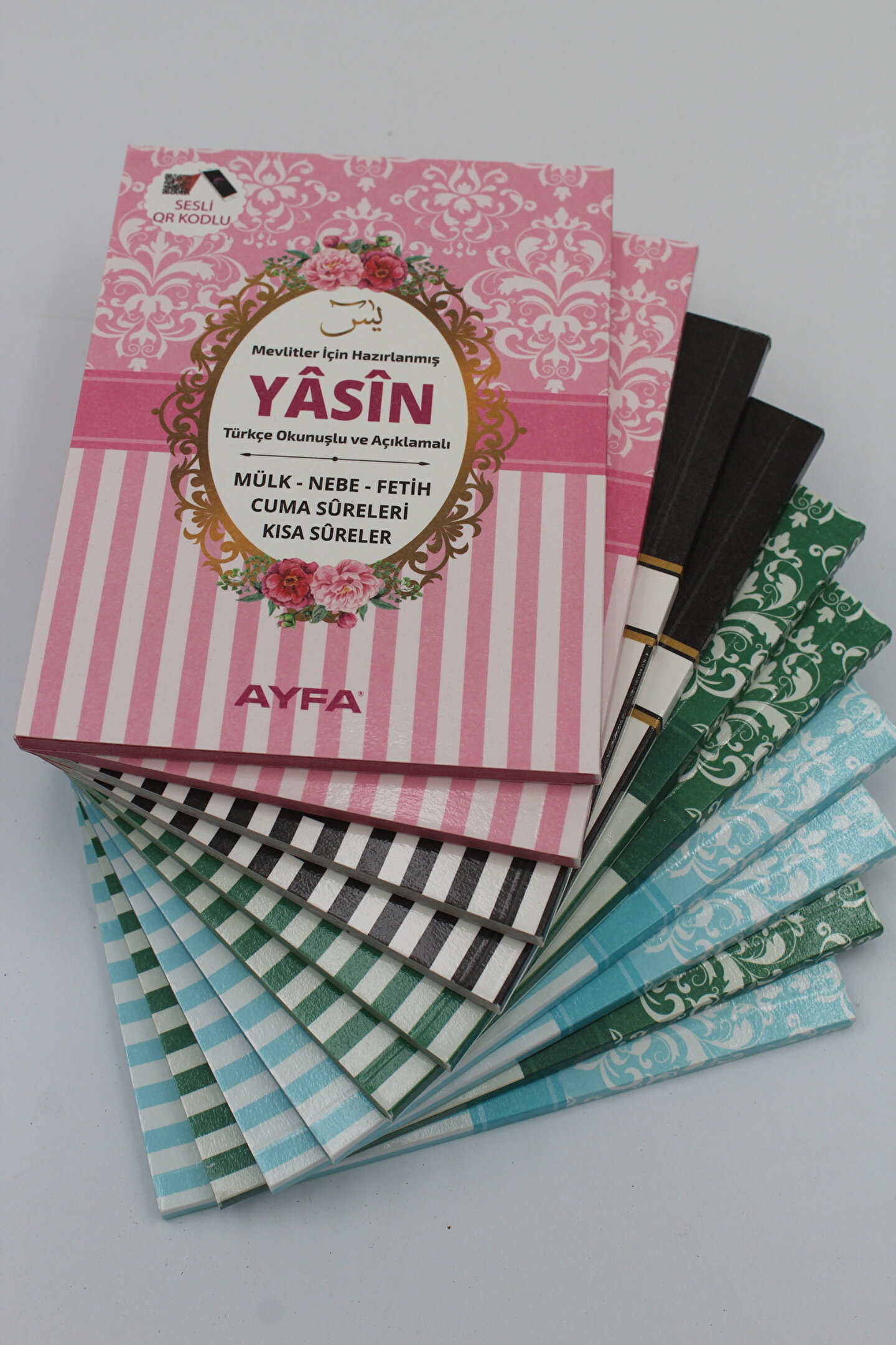10 Adet Yasini Şerif Açıklamalı ve Mealli Çanta Boy ; Ürün Özellikleri ; Boyut: 12x16cm ; 2. Hamur Kağıt ; Karton Kapak ; 80 Sayfa ; 2 Renk Baskı ; Dünyanın en kolay okunan Bilgisayar Hattı ile hazırlandı, seçilen yazı hem estetik hem de harflerin temel karakterlerini koruyan ve kolay okunmalarını sağlayan özel bir hattır. Harekeler ait oldukları harflerin hemen altında ya da üstünde sıralanmış, özellikle okumaya yeni başlayanlar hareke karışıklıklarına meydan vermeyecek şekilde düzenlenmiştir. ;