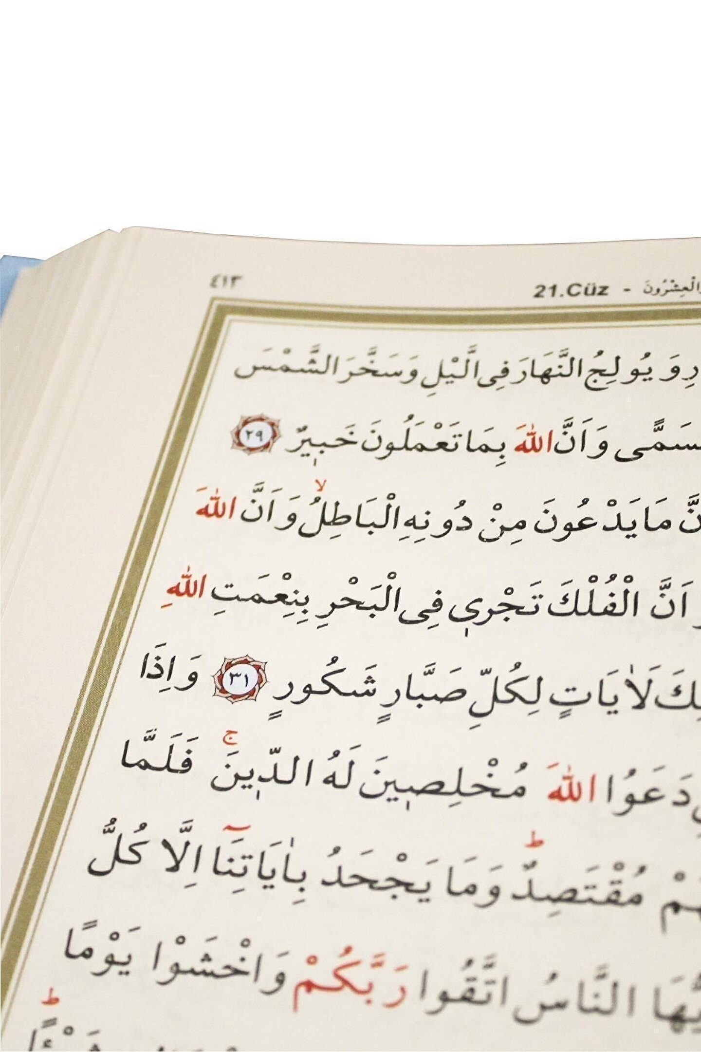 Orta Boy Kuranı Kerim Diyanet Mühürlü, orta boy, bilgisayar hatlı dünyanın en kolay okunan kuranı kerimlerinden biriyle buluşturuyoruz. ; Kuranı Kerimimizin Tasarımı Kuranı Kerim özel iç tasarımı, göz yormayan renkleri ile kolay okunabilmeyi sağlamıştır. ; Özellikle hareke ve harflerin bir arada yazılışındaki sadelik ve okunaklılık, en çok tercih edilme nedenlerinden biridir. ; Seçilen yazı hem harflerin temel karakterlerini koruyan ve kolay okunmalarını sağlayan özel bir hattır. ; Harekeler ait oldukları harflerin hemen altında ya da üstünde sıralanmış, özellikle okumaya yeni başlayanlar hareke karışıklıklarına meydan vermeyecek şekilde düzenlenmiştir. ; Her bir sure başlığında, ayet sayısı, rakam ve yazı ile belirtilmiştir. ; Uzun yıllar dayanıklı olması açısından, kaliteli kapak ve iplik dikişli olarak üretilmiştir. ; Baskısı ve cildinde gerekli dikkat ve özveri gösterilerek üretimi yapılmaktadır. ; Özellikleri Diyanet Mühürlü Orta Boy 17cm x 24cm ebatında 616 Sayfa Lüks Cilt Bilgisayar Hatlı;