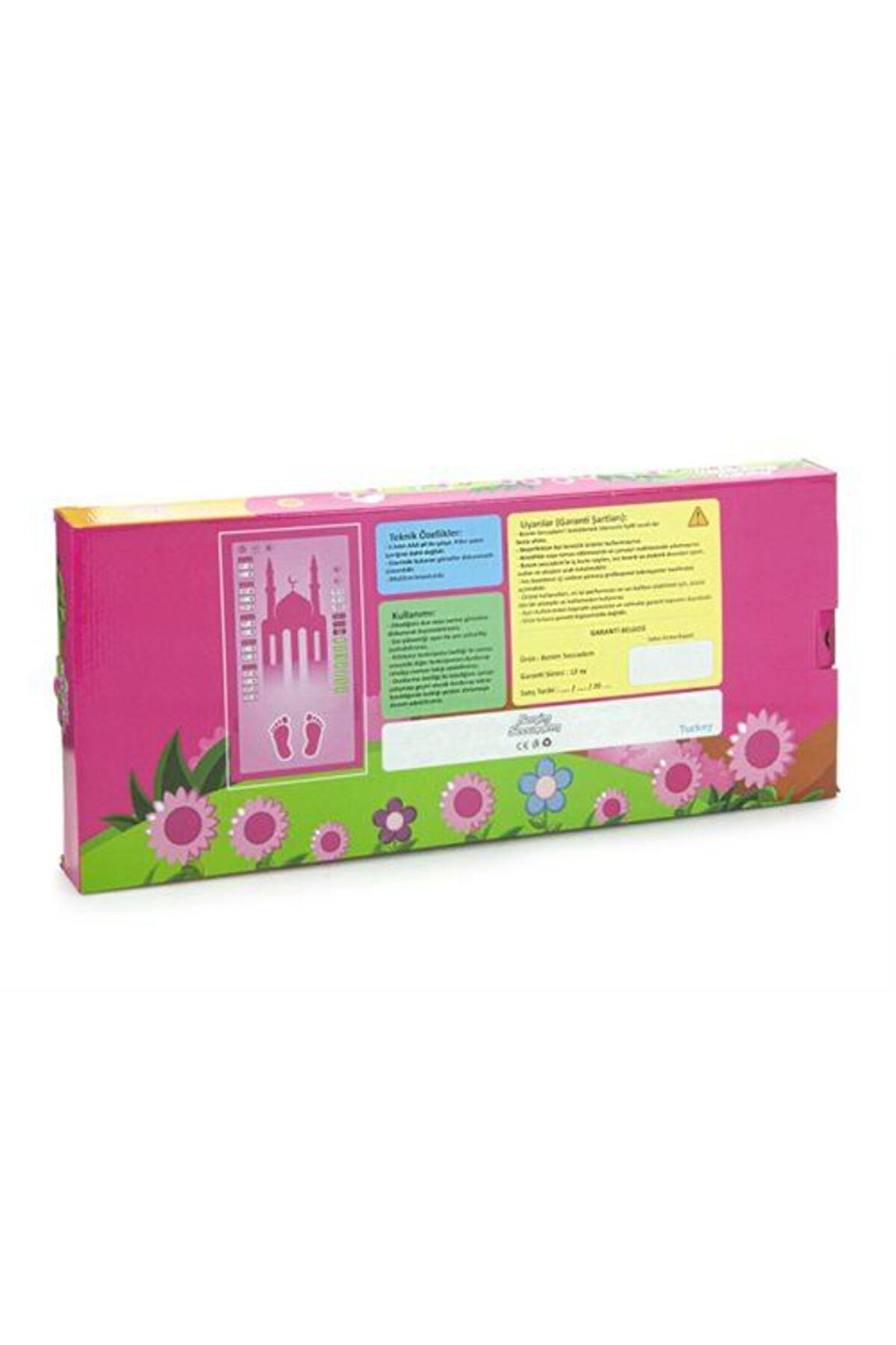 Benim Seccadem Çocuklar İçin 7 Dilde Sesli Konuşan Namaz Kıldıran Seccade (Kod:508P) Ayfa Basın Dil: Arnavutça, Almanca, Arapça, Türkçe, İngilizce, Fransızca, Özbekçe; Dil: Arnavutça, Almanca, Arapça, Türkçe, İngilizce, Fransızca, Özbekçe; Dil: Arnavutça, Almanca, Arapça, Türkçe, İngilizce, Fransızca, Özbekçe; Dil: Arnavutça, Almanca, Arapça, Türkçe, İngilizce, Fransızca, Özbekçe; Dil: Arnavutça, Almanca, Arapça, Türkçe, İngilizce, Fransızca, Özbekçe; Dil: Arnavutça, Almanca, Arapça, Türkçe, İngilizce, Fransızca, Özbekçe; Dil: Arnavutça, Almanca, Arapça, Türkçe, İngilizce, Fransızca, Özbekçe; Ebat: 55 x 95; Barkod: 8015791464827; Tasarım: Kollektif; Benim Seccadem Çocuklar İçin Namaz Kıldıran Konuşan Seccade Artık 7 Dilde ! ( Türkçe-İngilizce-Arapça-Özbekçe-Fransızca-Almanca-Arnavutça ) Rabbimizin Emri Olan Namazı Çocuklarınızın Namazlarını Kılmaya Alışmalarında Ve İlk Öğrenme Aşamalarında Eksiksiz Ve En Doğru Şekilde Namazlarını Kılmalarını Kılmayı Öğrenmeleri İçin Hazırlanmış Bu Eşşiz Ürün İle Çocuklarınız Namaz Kılmayı Eğlenerek Öğrensin.; KUTU İÇERİĞİ: 1 Adet Benim Seccadem Sesli Eğitici Çocuk Seccadesi İLK SECCADEM ÇOCUKLAR İÇİN NAMAZ KILMAYI ÖĞRETEN SECCADE TEKNİK ÖZELLİKLERİ: Benim Seccadem iç kısmı naylon, ses boardı ve elektrik devreleri içerir, sudan ve ateşten uzak tutulmalıdır.; Ses boardının içi sadece yalnızca profesyonel teknisyenler tarafından açılmalıdır.; Ürünü kullanırken, en iyi performans ve ses kalitesi alabilmek için, ürünü düz bir yüzeyde ve katlamadan kullanın.; İlk Seccademi temizlemek isterseniz hafif nemli bir bezle siliniz.; Kesinlikle suya temas ettirmeyiniz ve çamaşır makinasın da yıkamayınız Boyu 95x55Cm 'dir.; KULLANIMI: 3 Adet AAA pil ile çalışır.; Piller paket içeriğine dahil değildir.; Üzerinde bulunan görseller dokunmatik sistemlidir.; Dilediğiniz dua veya namaz görseline dokunarak başlatabilirsiniz.; Ses yüksekliği ayarı ve durdurma özelliğine de sahiptir.