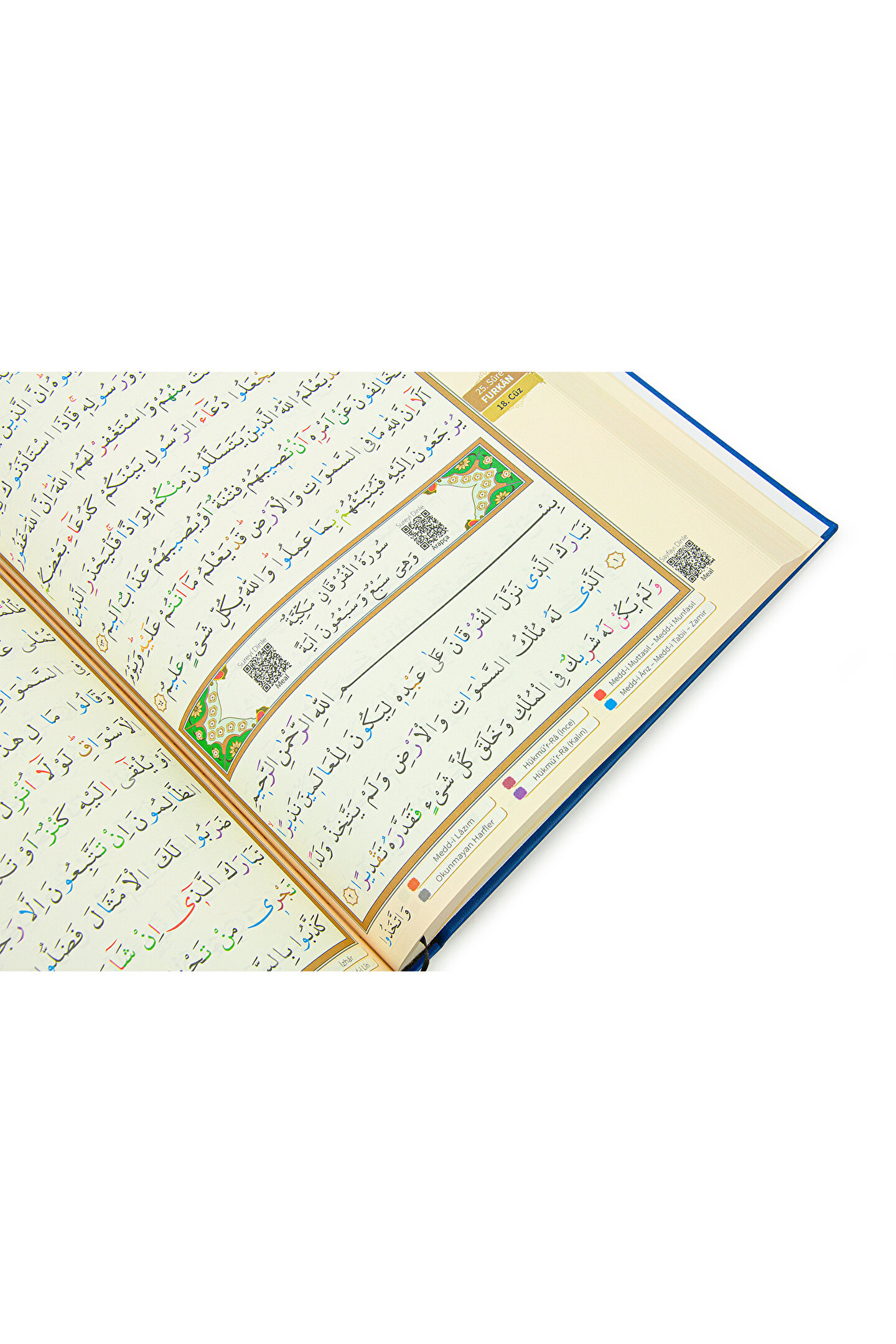 ESERİN ÖZELLİKLERİ Diyanet Mühürlü: Diyanet İşleri Başkanlığı Mushafları İnceleme ve Kıraat Kurulu'ndan Onaylı ve Mühürlü Hat: Milyonlarca insanın Kur'ân-ı Kerim okumasını öğrendiği hattan.Okuması çok kolay bilgisayar hatlı QR Kod Teknolojisi: Var İç Baskı Özelliği: 4 Renk Ebat: Orta Boy Boy: 25 cm * 34 cm Kapak: Termo İç Kağıt: Şamua Kağıt Fihristli: Var Ağırlık: 2150 gr Önemli Not: Kapak rengi yayın evinin güncel basımda kullandığı kapak rengine göre değişiklik gösterebilmektedir. ; Örnek Renkler:Bordo,Yeşil,Nır,Fuşya,Siyah,Turkuaz dır. ; Termo Deri, Tecvidli Kur'ânı Kerim;