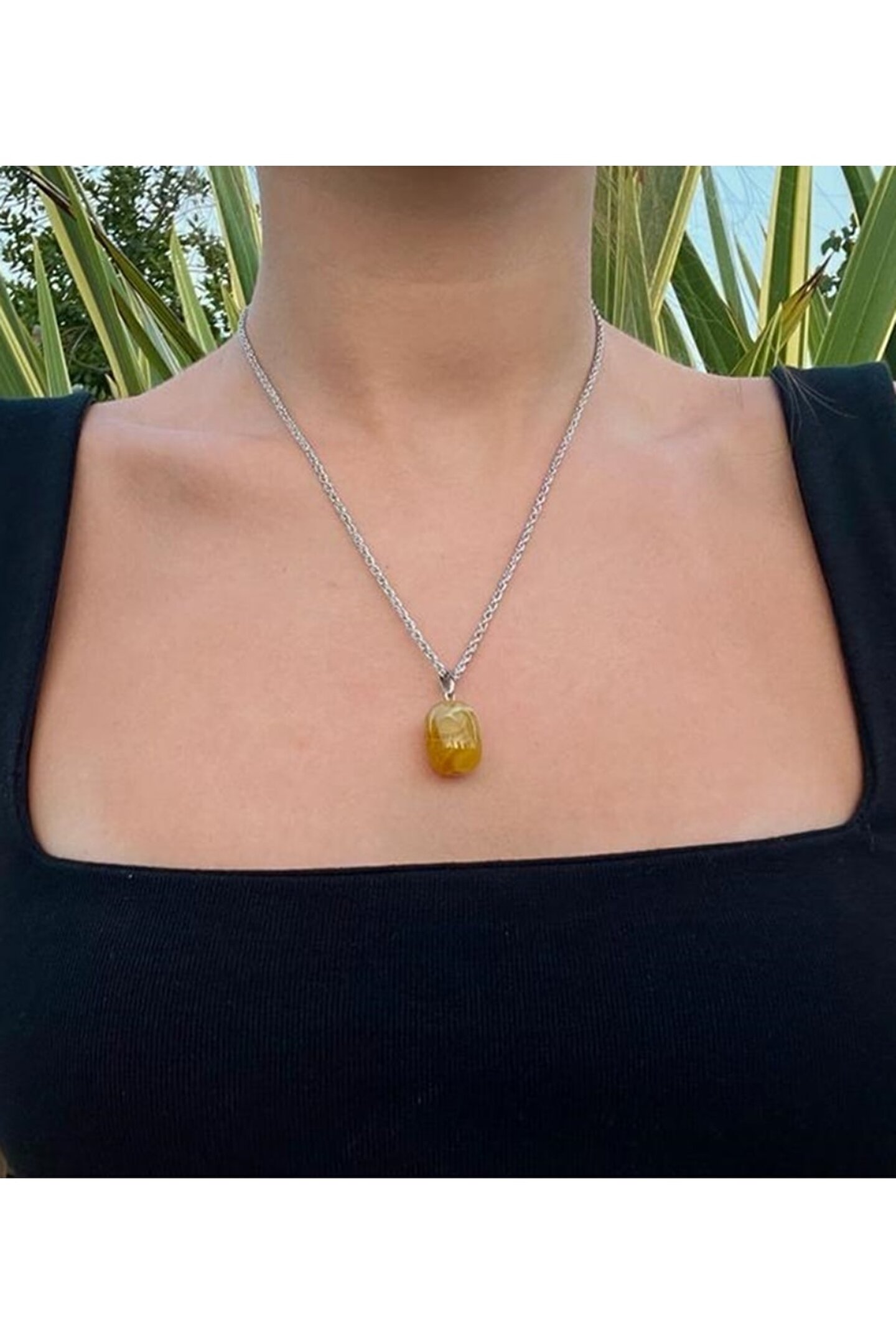 KOLYE ZİNCİRLERİ GÜMÜŞ KAPLAMADIR. ; KULLANIM ÖNERİSİ OLARAK KOLYENİN KİMYASAL MADDELERLE (ŞAMPUAN, HAVUZ KLORU VS.) TEMASINDAN KAÇINILMALIDIR AKSİ HALDE DOĞAL TAŞIN VE ZİNCİRİN YAPISINDA BOZULMALAR GÖRÜLEBİLİR. ; -----ÖZELLİKLERİ----- -Güçlü bir arındırıcı ve yeniden canlandırıcıdır. ; -Kasvet ve olumsuzlukları ortadan kaldırır. ; -Bereket taşıdır. ; -Parayı çektiğine inanılır. ; Küçük bir parçasını cüzdanınızdataşırsanız cüzdanınızda para eksik olmaz. ; -Hazmedemediğimiz durumları, hazmetmemize yardımcı olur. ; -Zihin açıklığı verir. ; Hafıza ile ilgili problemlerinçözümüne yardım eder. ; -Anksiyete(endişe, panik, kaygı) ve korkuları hafifletir. ; TÜM ÜRÜNLER AYSHO DOĞAL TAŞ KALİTESİ KAPSAMINDA SERTİFİKASIYLA BERABER GÖNDERİLMEKTEDİR.;