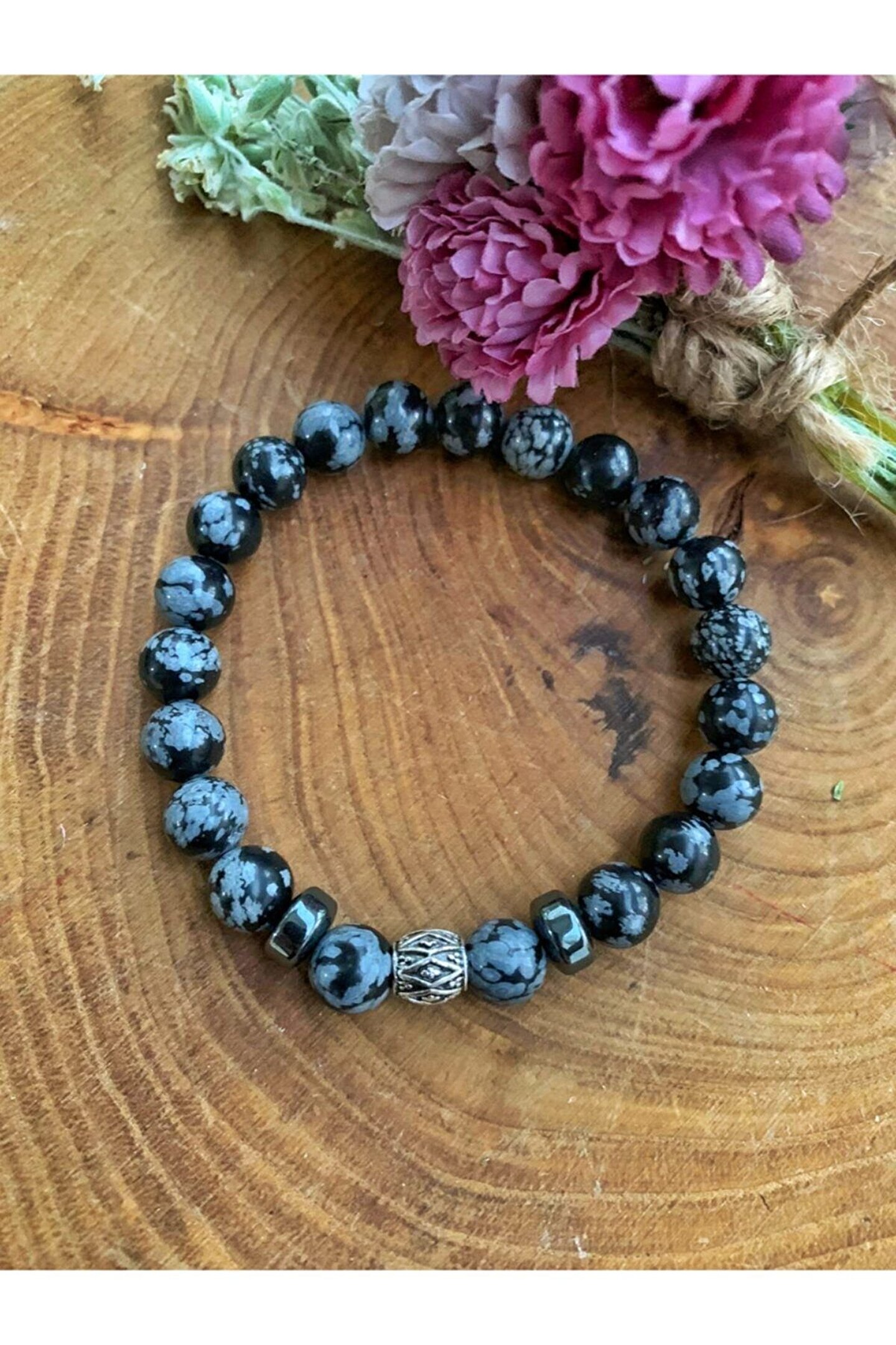 Doğal obsidyen taşı kullanılarak üretilmiş, her bir bileklik benzersiz ve özgün bir tasarıma sahiptir; Göz alıcı siyah rengiyle dikkat çeken bu bileklik, şıklığınızı tamamlayacak zarif bir aksesuardır; Doğal taş materyali sayesinde her bileklik, doğanın saf güzelliğini parmaklarınıza taşır ve her kullanımda farklı bir deneyim sunar; El yapımı olmasıyla öne çıkan bu bileklik, hem kaliteyi hem de estetiği bir arada sunarak günlük kullanım için idealdir;
