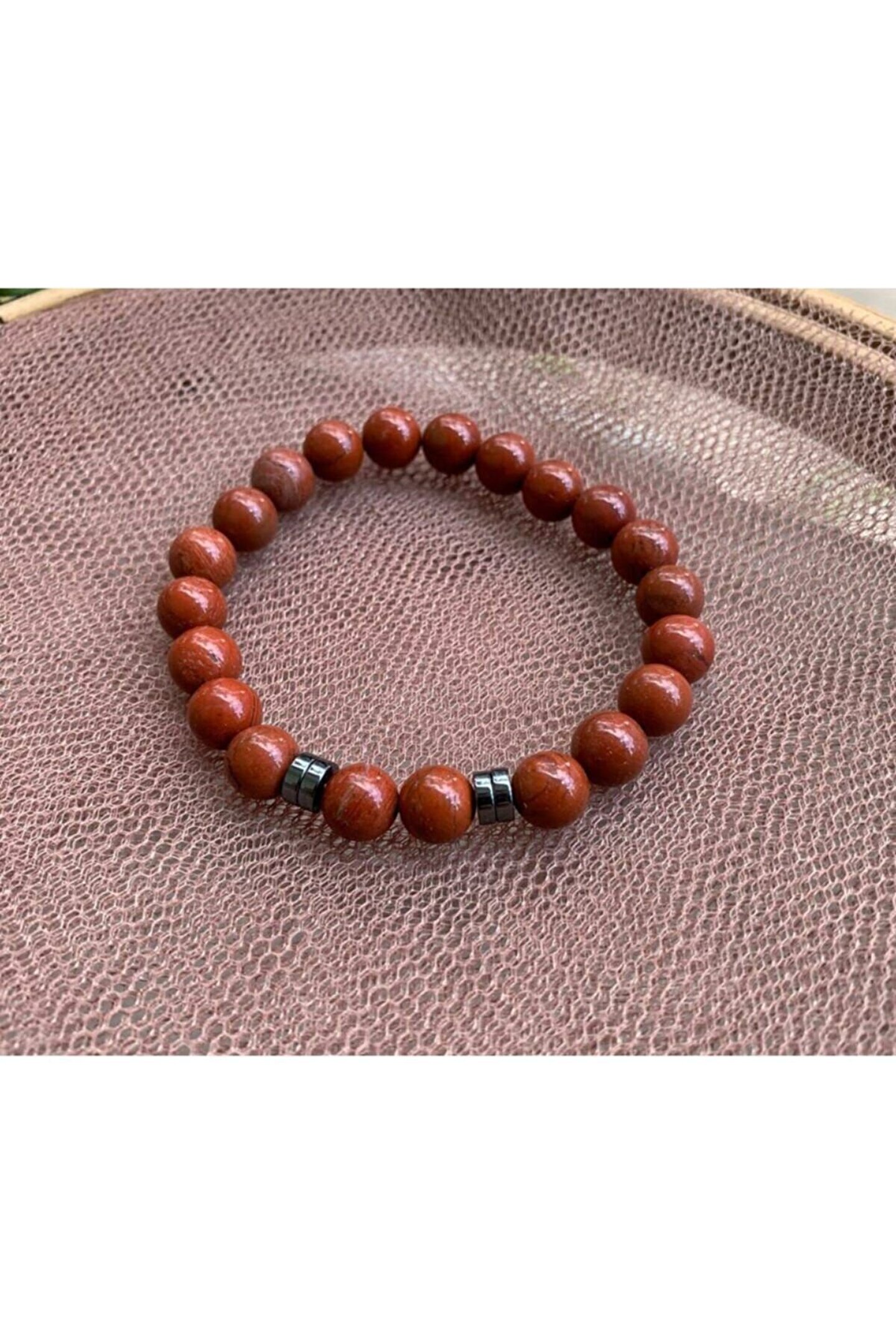 Doğal taş kullanımı sayesinde her bileklik benzersiz ve otantik bir görünüm sunar; Kırmızı jasper taşı, bilekliğe sıcak ve canlı bir renk katarken, şıklığınızı tamamlar; Doğal taşların eşsiz dokusu ve desenleri, her kıyafetle uyum sağlayarak stilinizi öne çıkarır; El yapımı ve özgün tasarımıyla dikkat çeken bu bileklik, günlük kullanım için idealdir; Hem gündelik hem de özel günlerde tercih edebileceğiniz bu aksesuar, her ortamda tarzınızı yansıtmanızı sağlar;